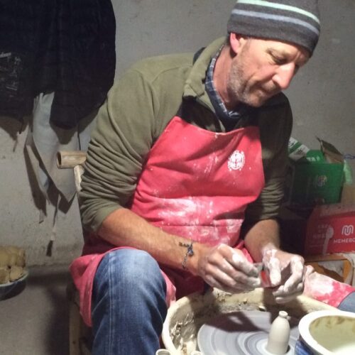 "I am firstly a potter but have also been a teacher, curator, and more recently moved from working with terracotta making garden ware into porcelain functional pots; vases, bottles, cups and dishes."