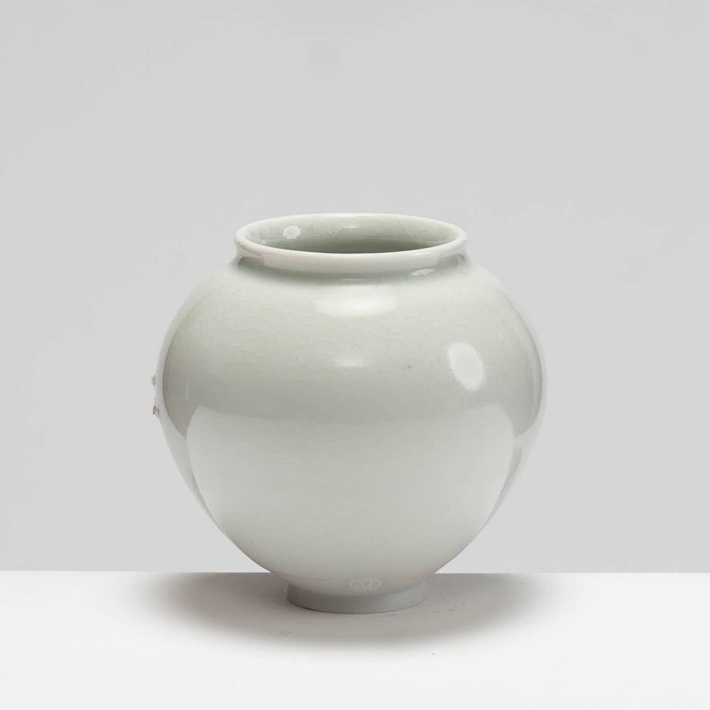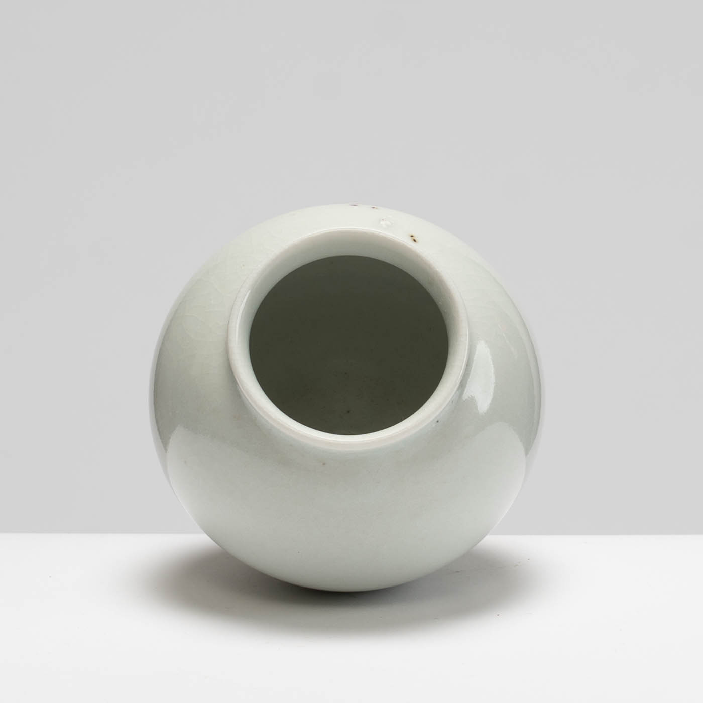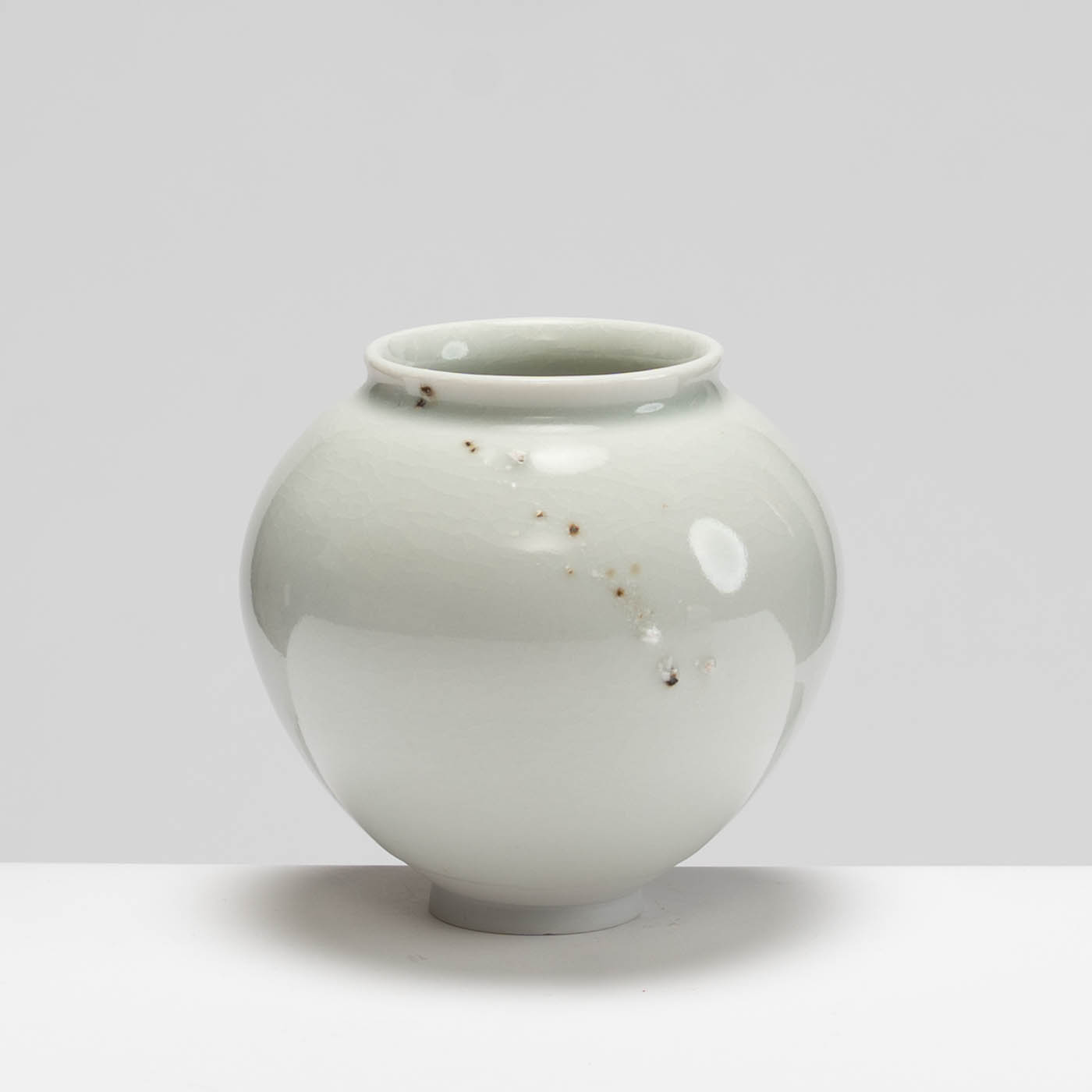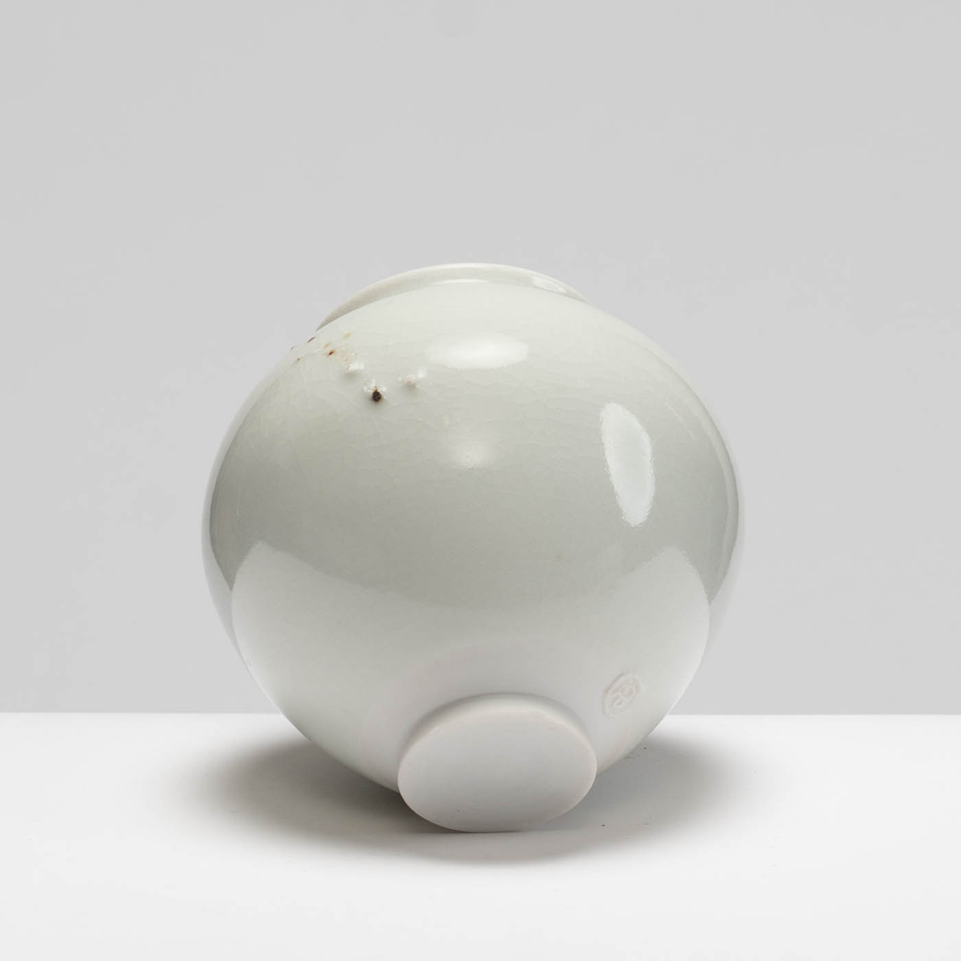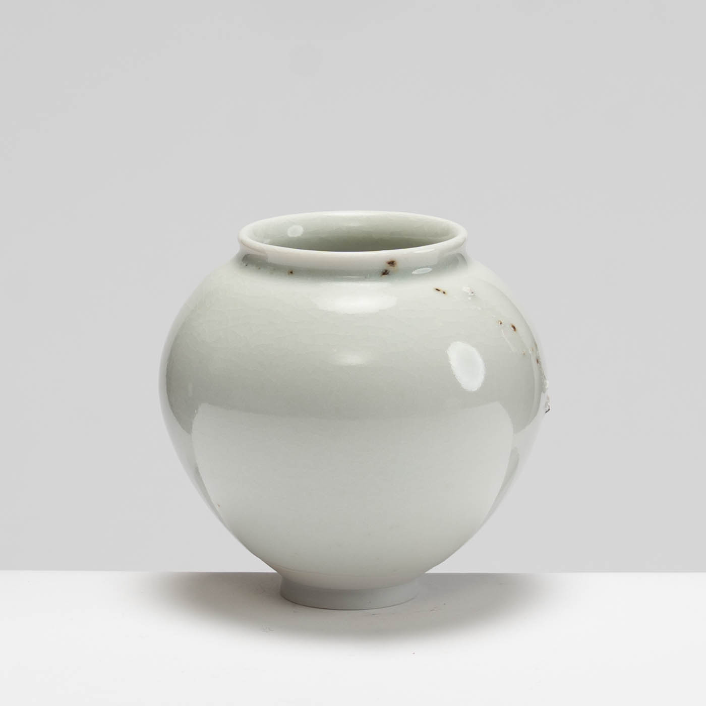 This porcelain jar is wheel thrown and wood-fired. Adam incorporates stone and locally dug clay into his work to create a narrative and convey a unique sense of place. The unpredictable nature of each jar comes from the inclusions and their metamorphosis during firing.