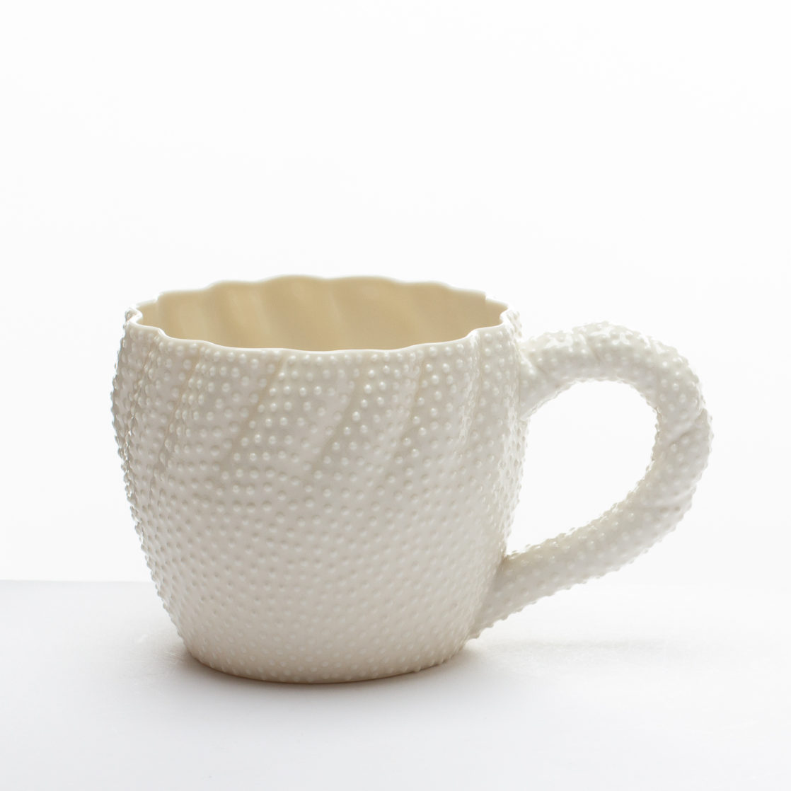 This mug is slip-cast in porcelain with a studded texture.