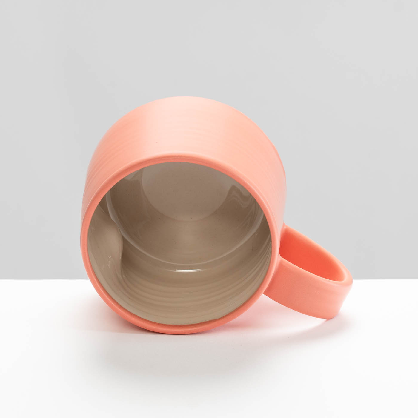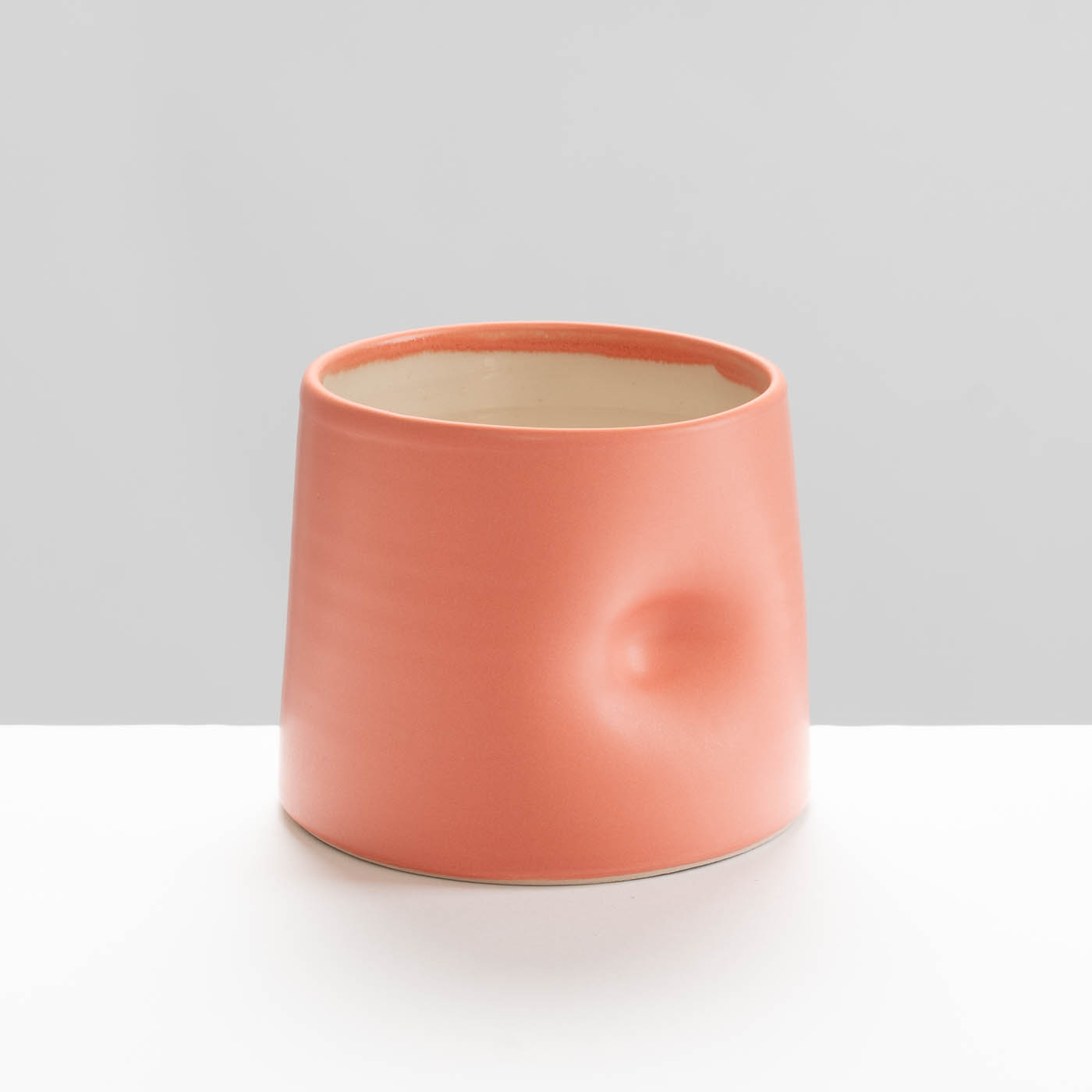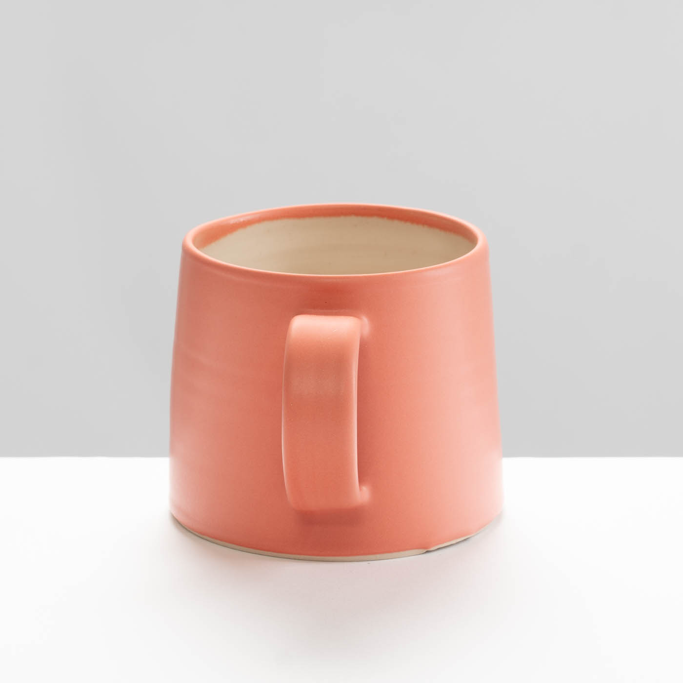 This cup is wheel-thrown using a fine stoneware body. Ergonomic and tactile, this piece is finished with a glossy interior and a coloured satin-matt glaze exterior.