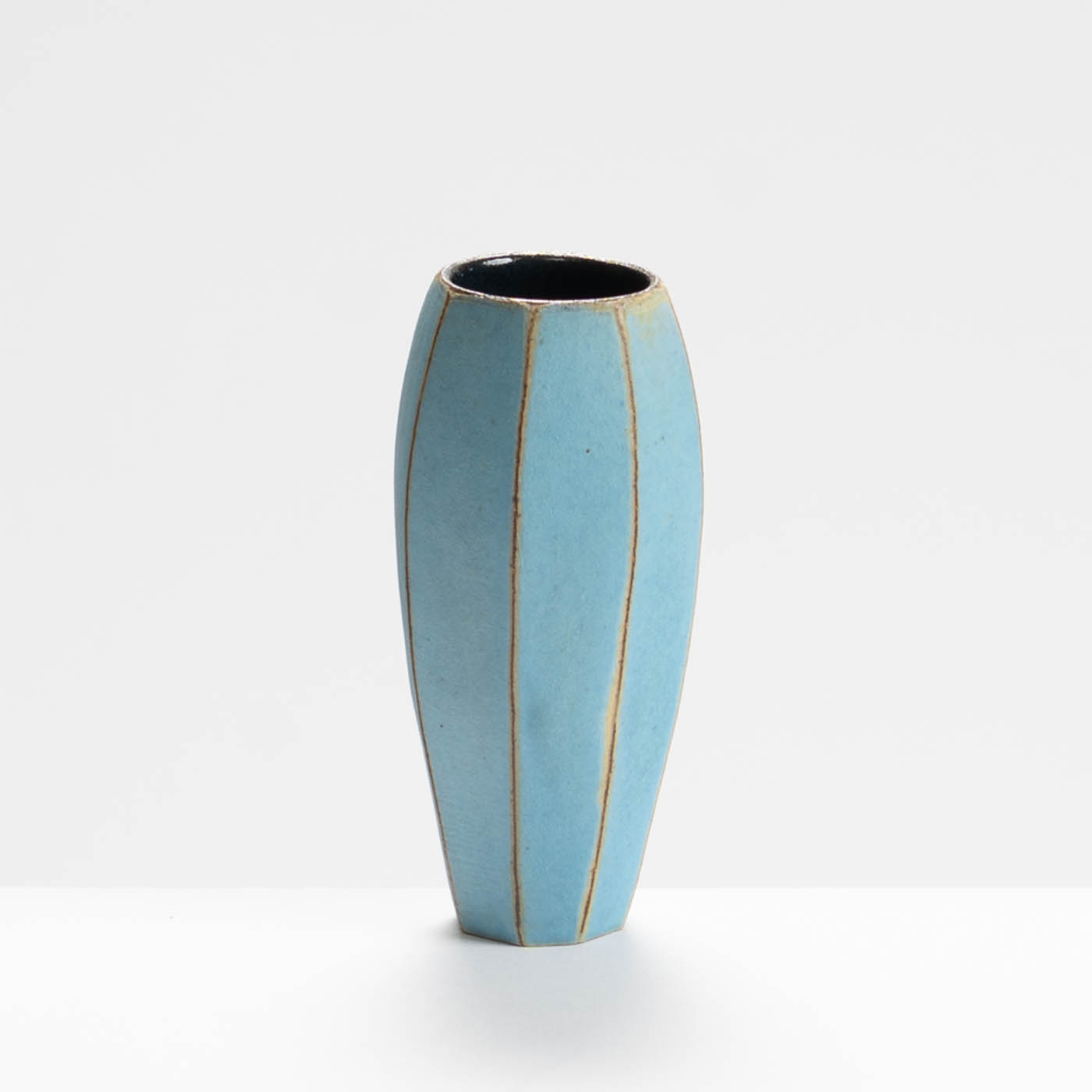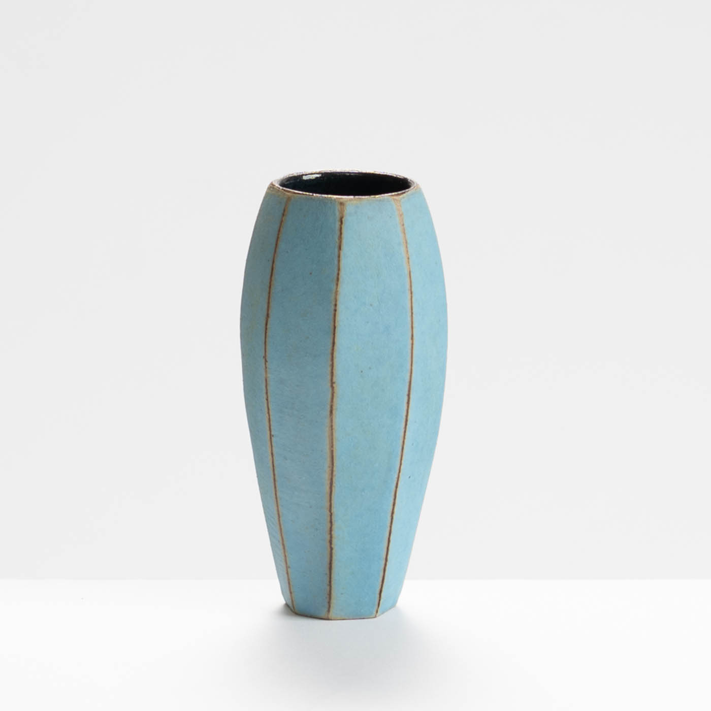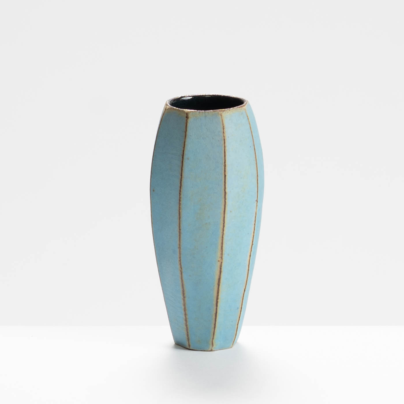 This elegant form is thrown in red stoneware clay and carved when leather hard.