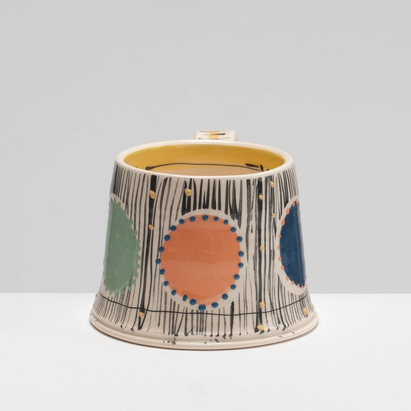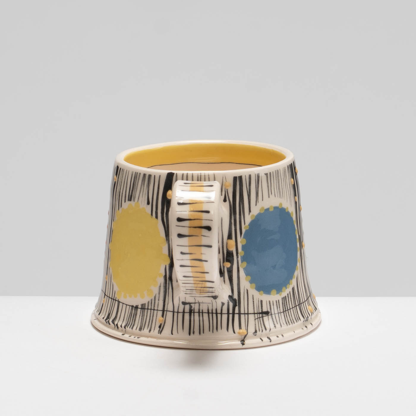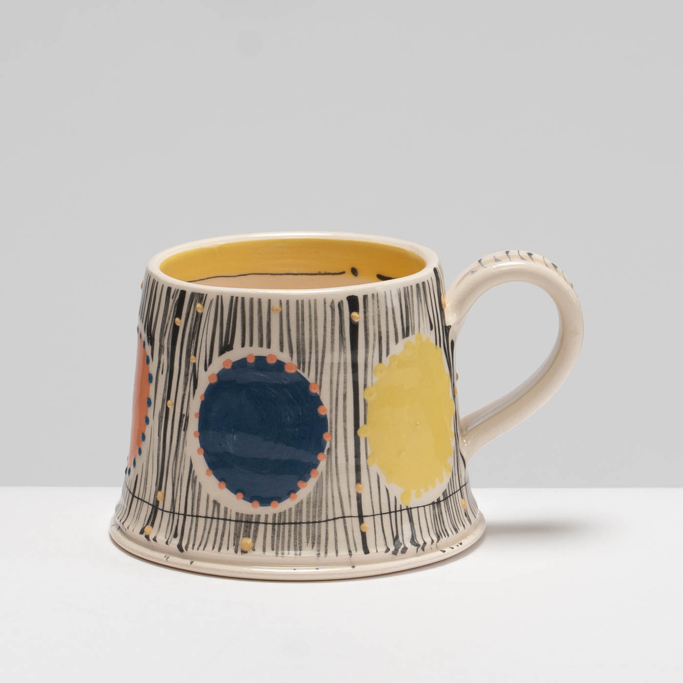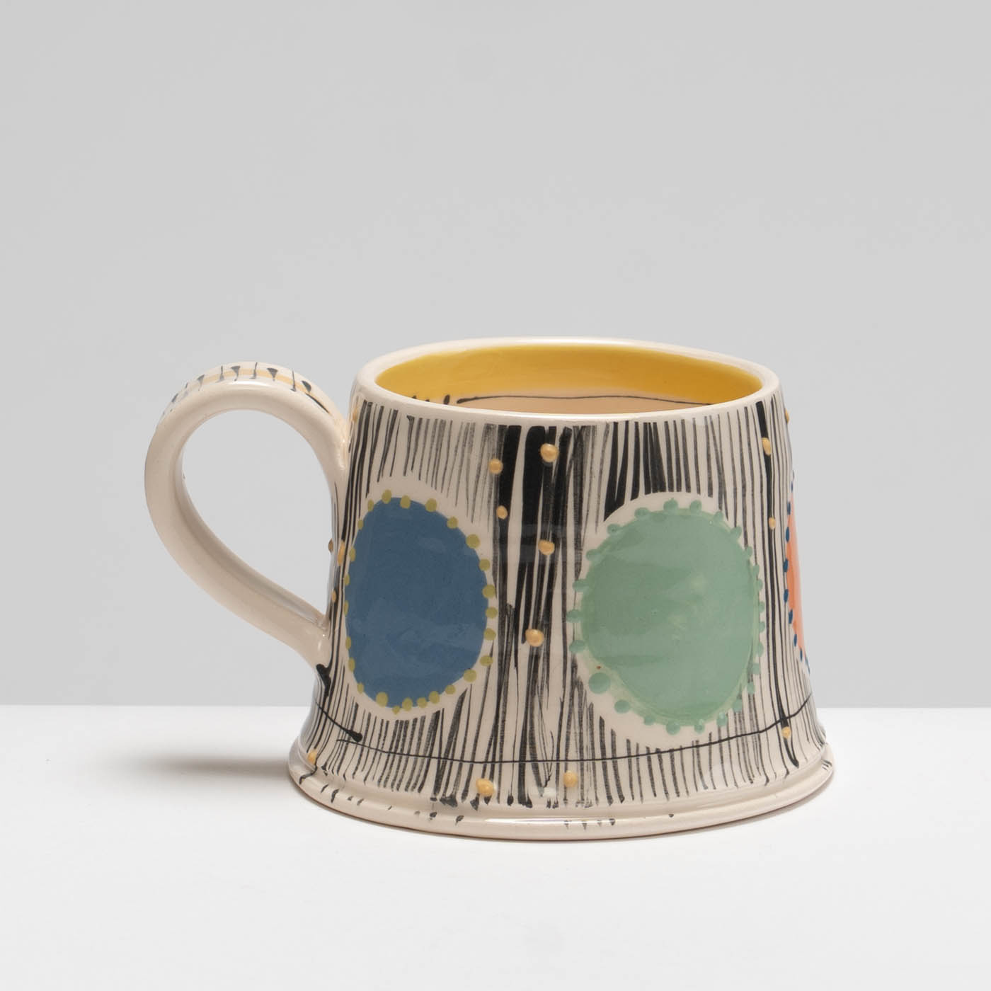 Full of character and charm, this earthenware mug is wheel-thrown and carefully decorated in Irena’s classic and animated slip decoration.