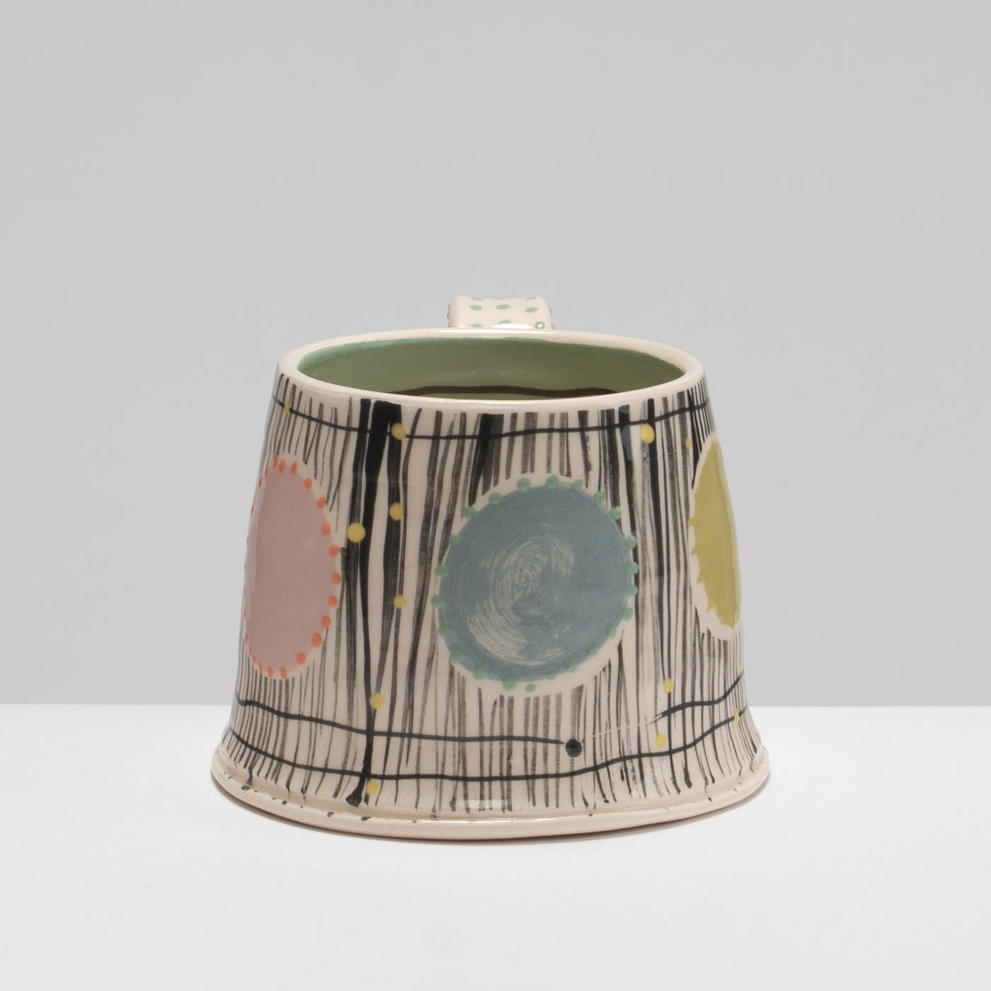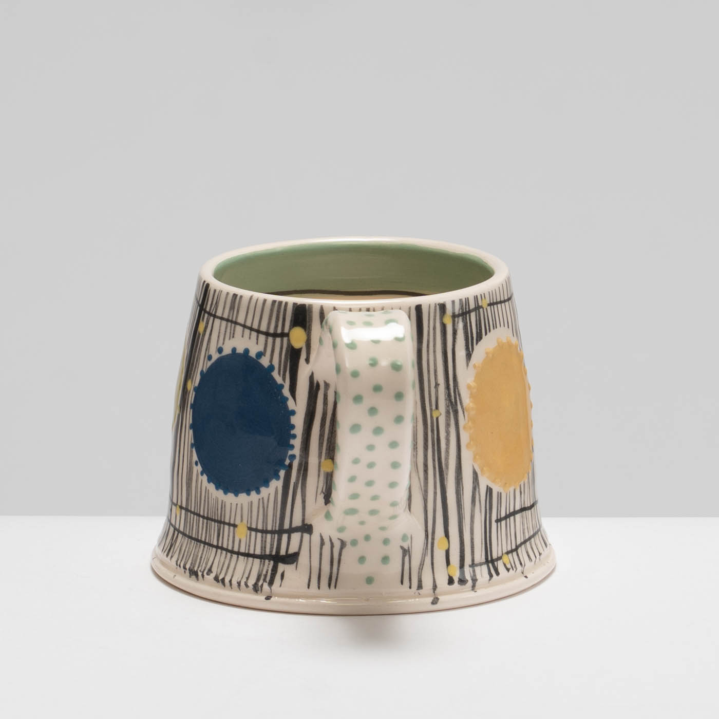 Full of character and charm, this earthenware mug is wheel-thrown and carefully decorated in Irena’s classic and animated slip decoration.