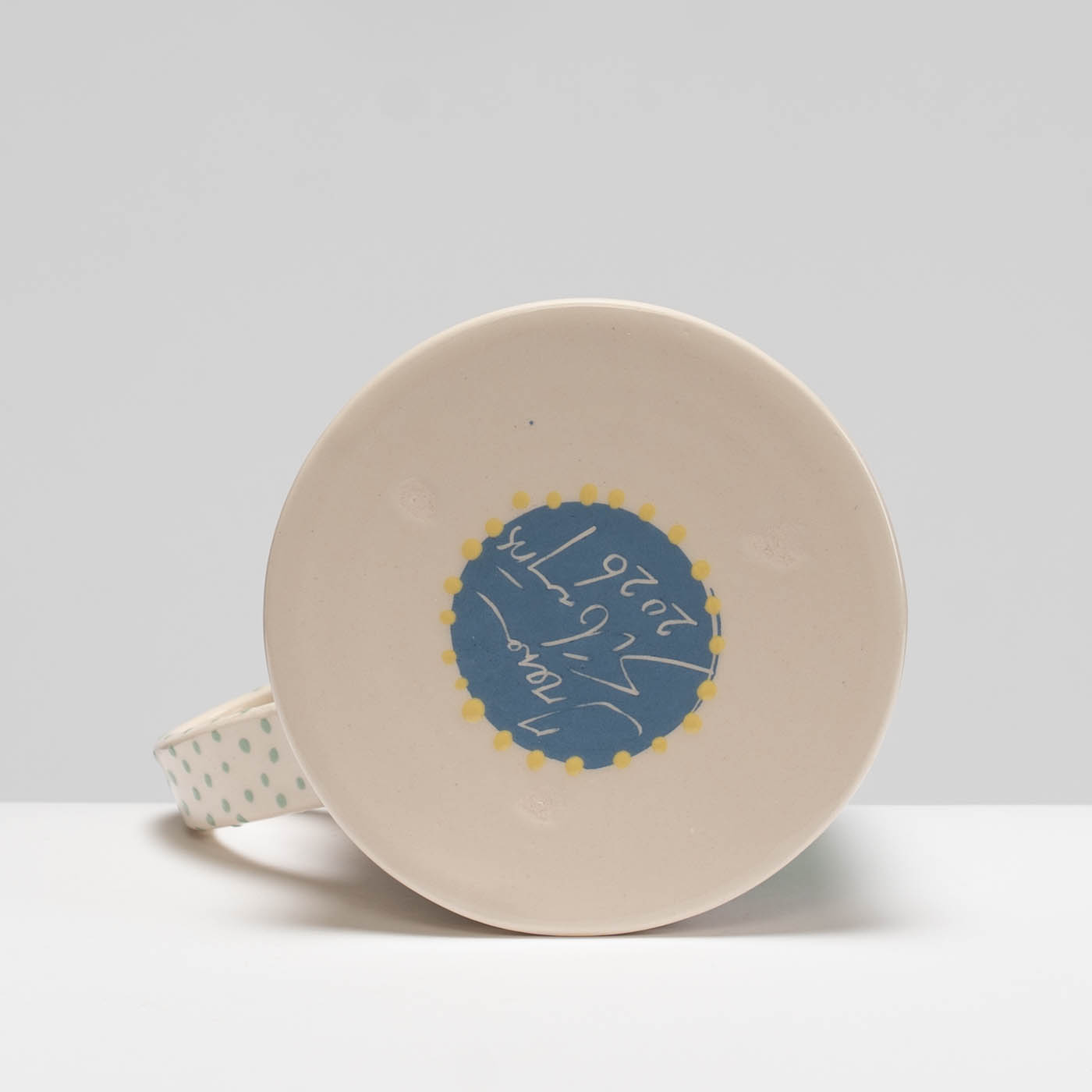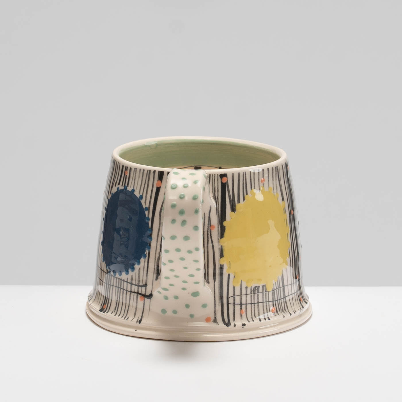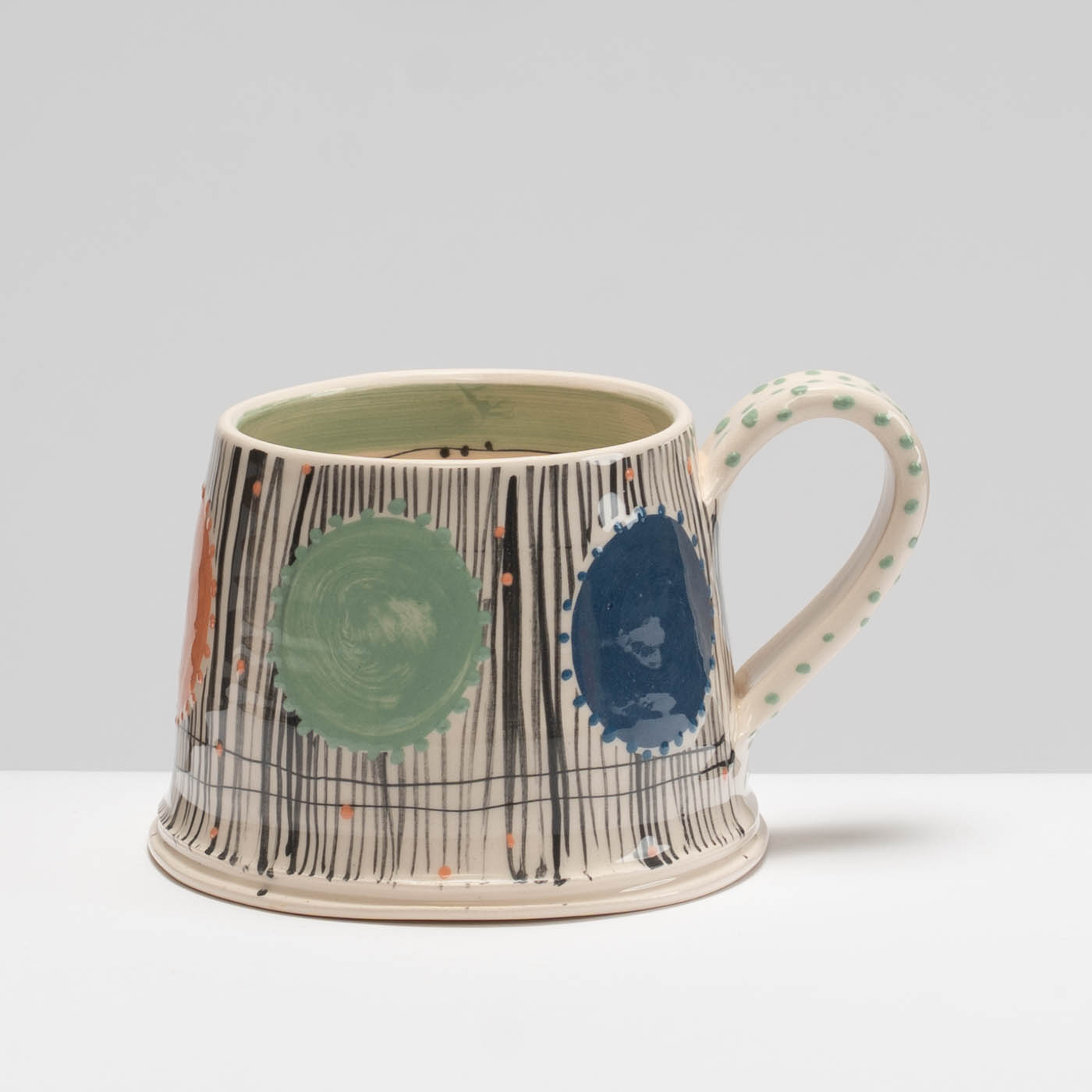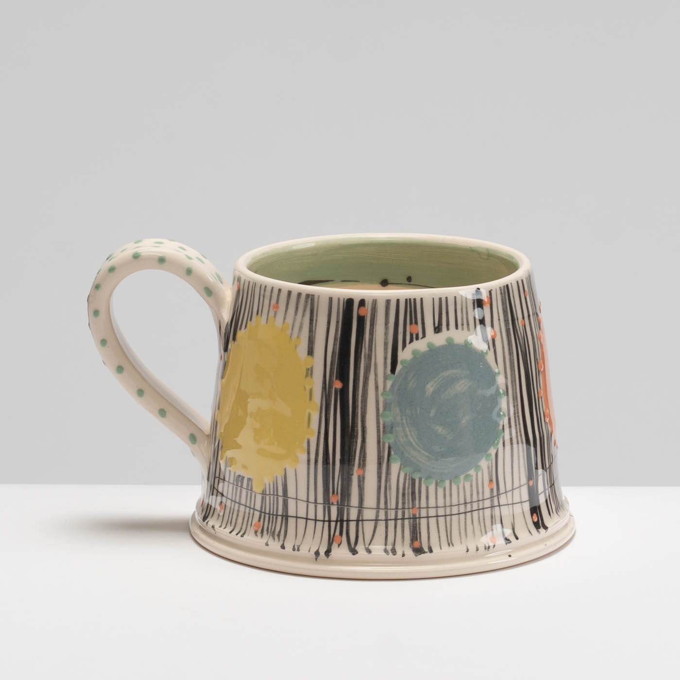 Full of character and charm, this earthenware mug is wheel-thrown and carefully decorated in Irena’s classic and animated slip decoration.