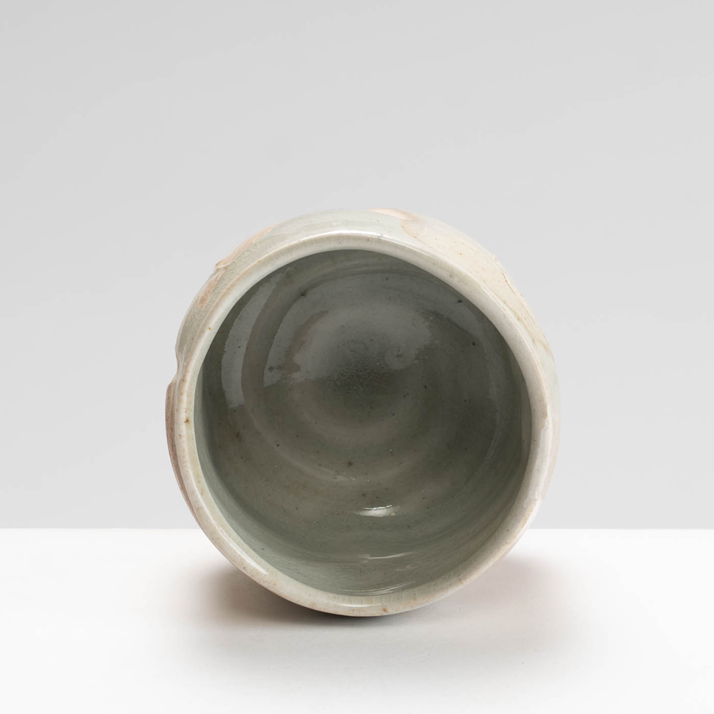 This wood-fired teabowl is wheel-thrown in a porcelain clay body. John develops his own clays, glazes and slips which respond to the flame, ember, ash, and soda. His work emanates the richness and energy of the elements and the experimentation with kiln atmosphere.