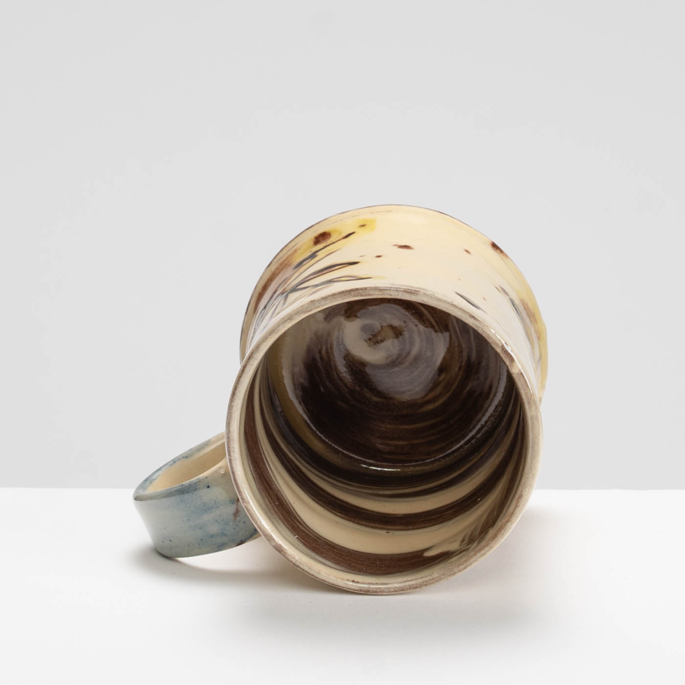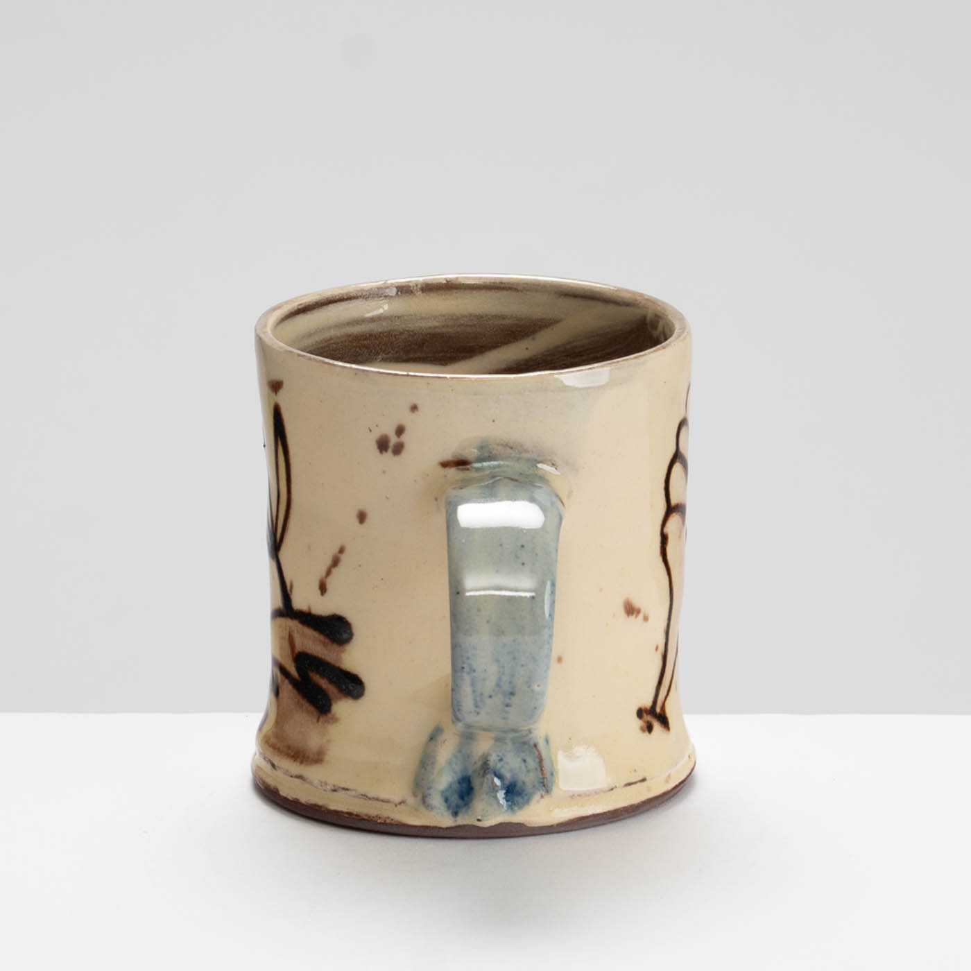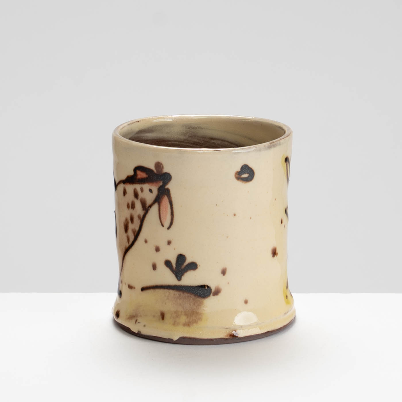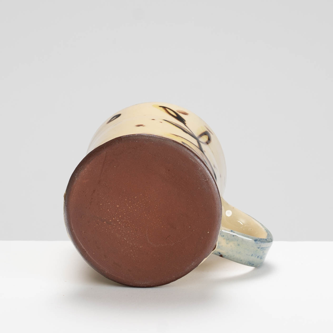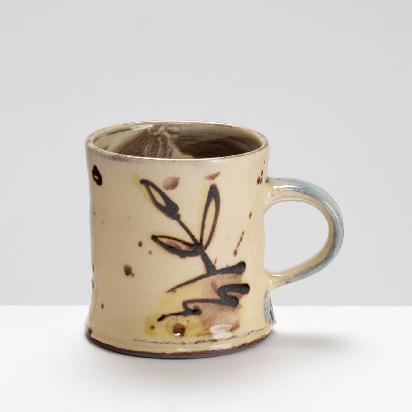 This delightful earthenware mug is wheel-thrown and painted with a slip-decorated motif.