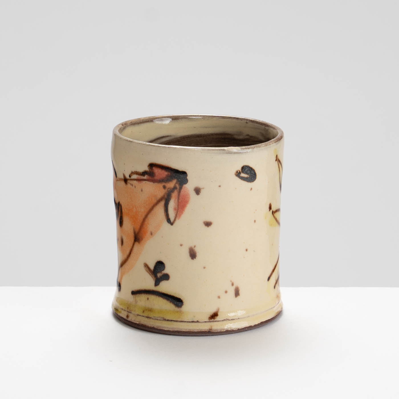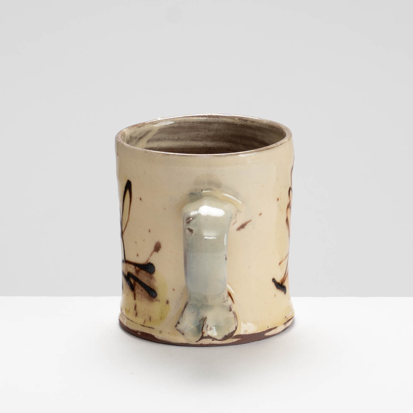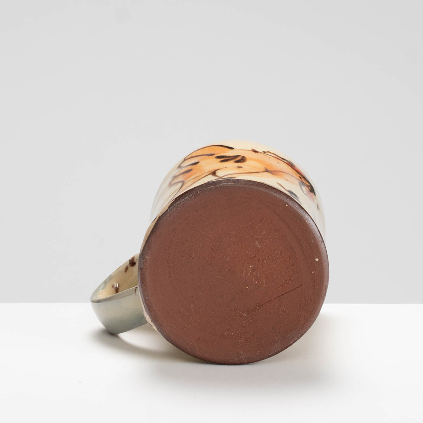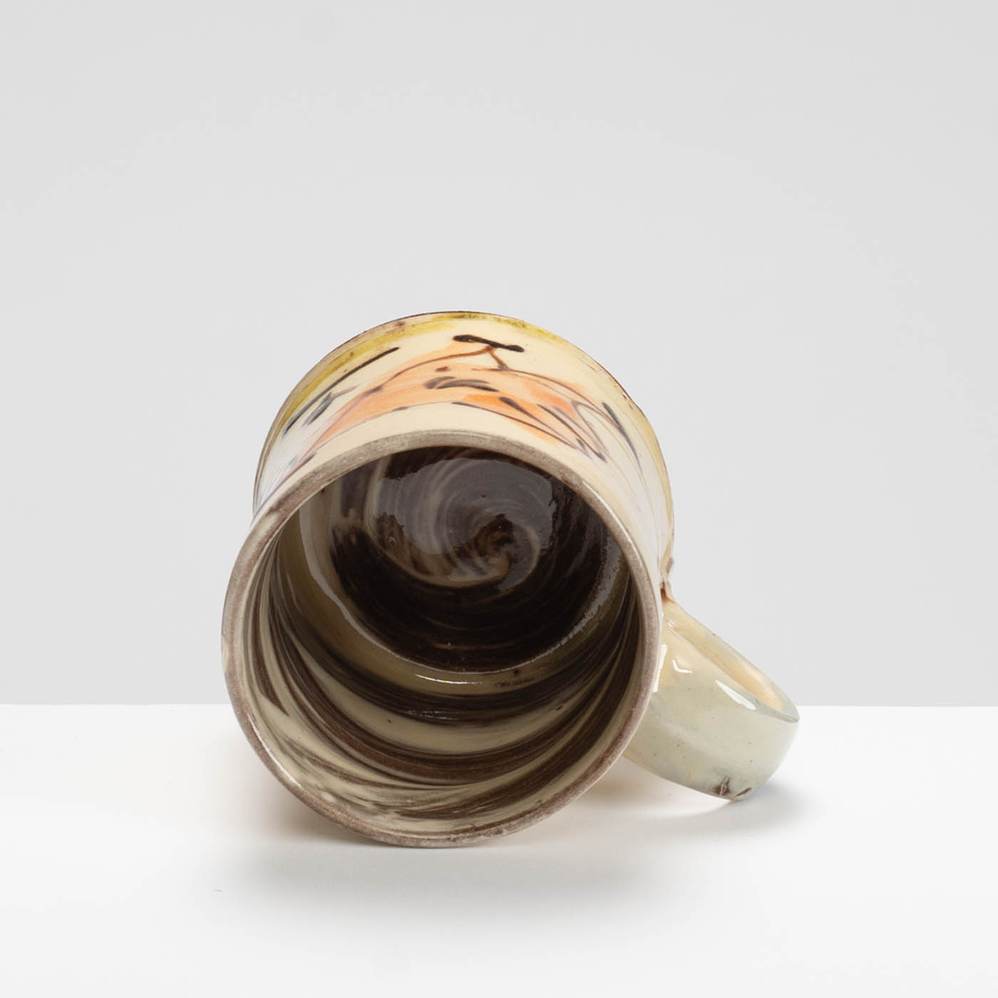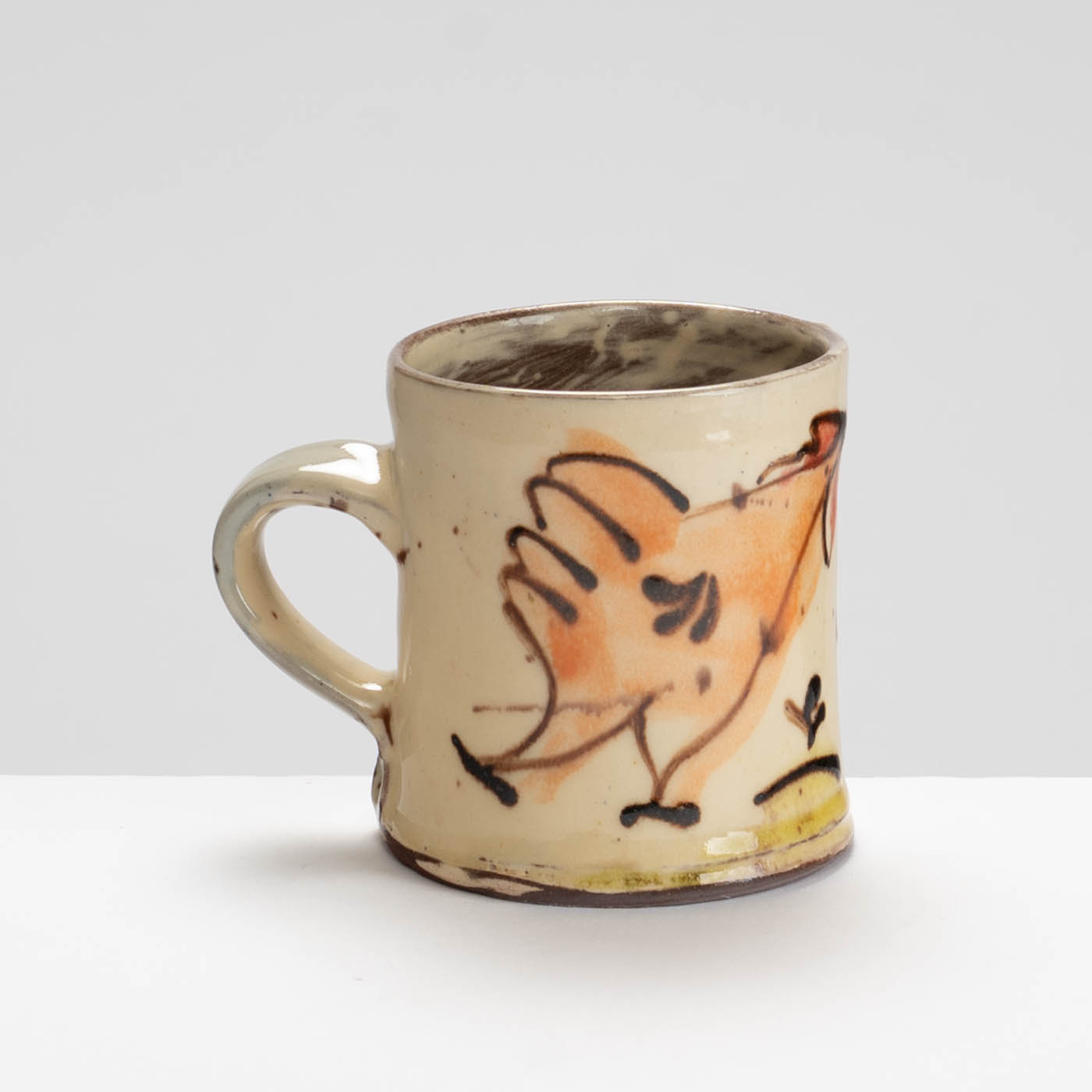 This delightful earthenware mug is wheel-thrown and painted with a slip-decorated motif.