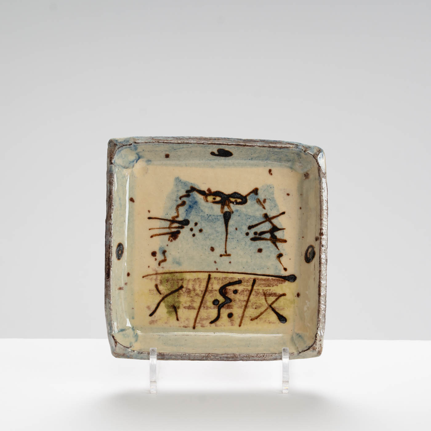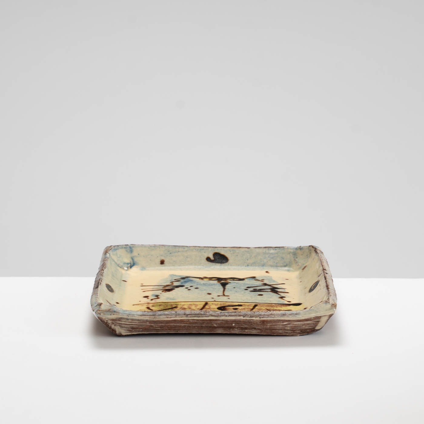This delightful earthenware dish is hand-built and painted with a slip-decorated motif.