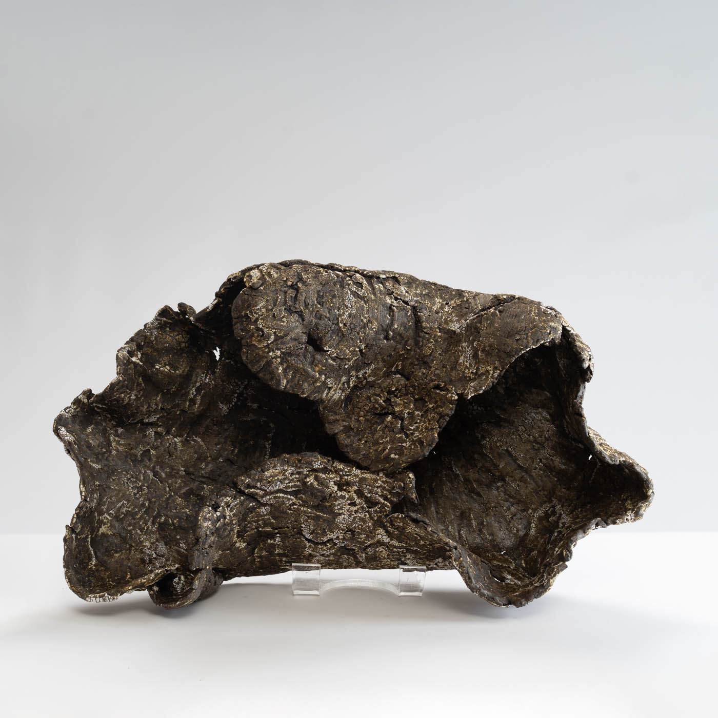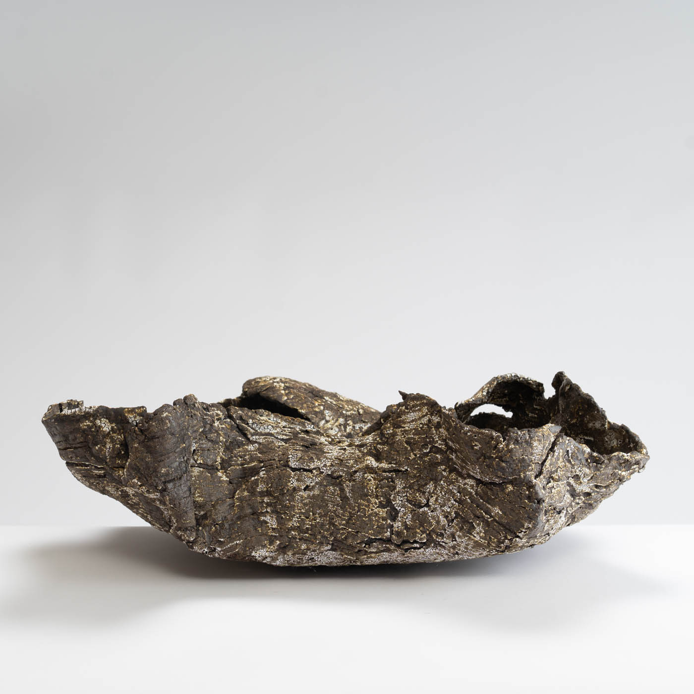 Hand-built from slabs of black stoneware clay, this sculptural vessel features a textured surface inspired by the rugged landscape of Norway. Layers of slips and glazes create depth and subtle tonal variation.