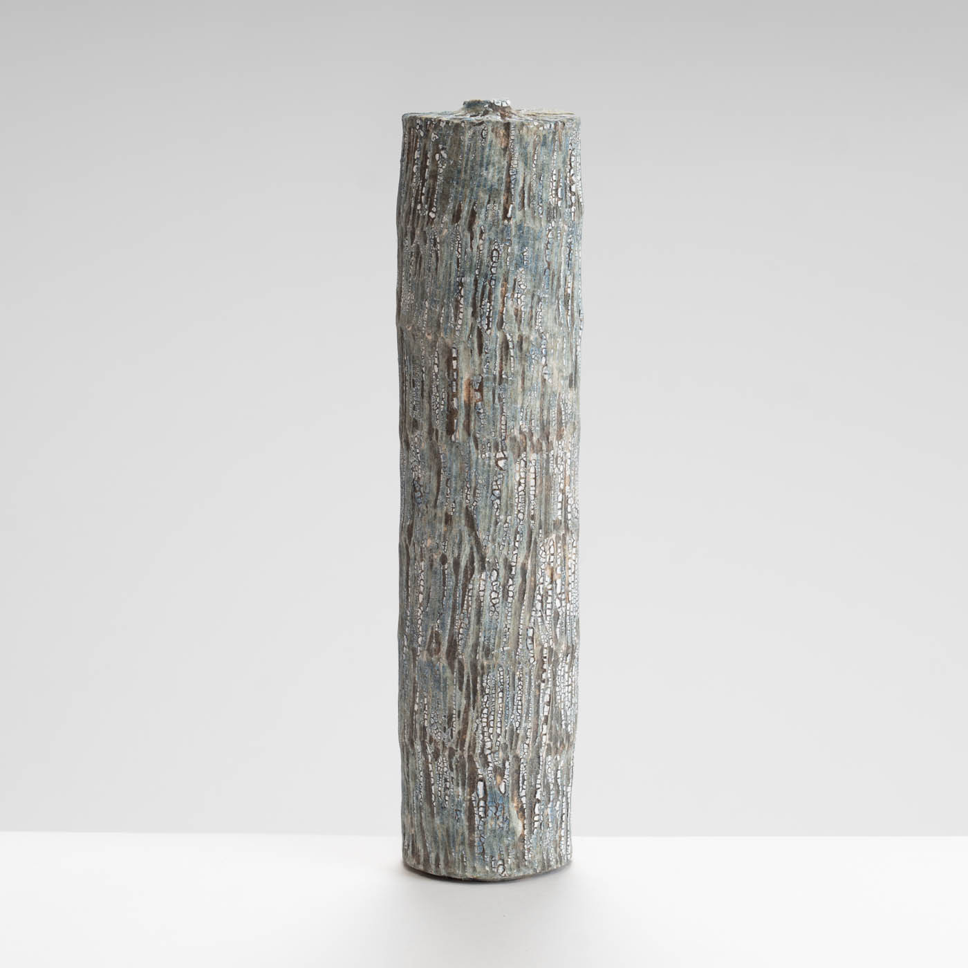Wheel-thrown and hand-carved from white stoneware clay, this bottle form features a textured surface inspired by the rugged landscape of Norway. Layers of slips and glazes create depth and subtle tonal variation.