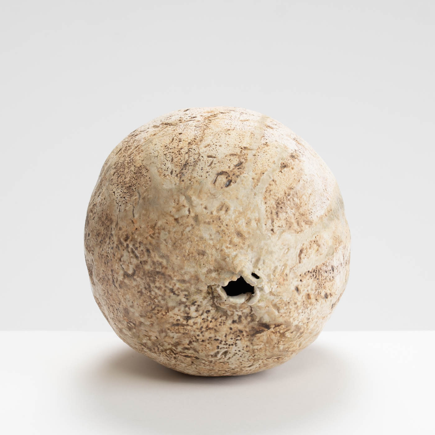 Wheel-thrown and altered from white stoneware clay, this vessel features a textured surface inspired by the rugged landscape of Norway. Layers of slips and glazes create depth and subtle tonal variation.
