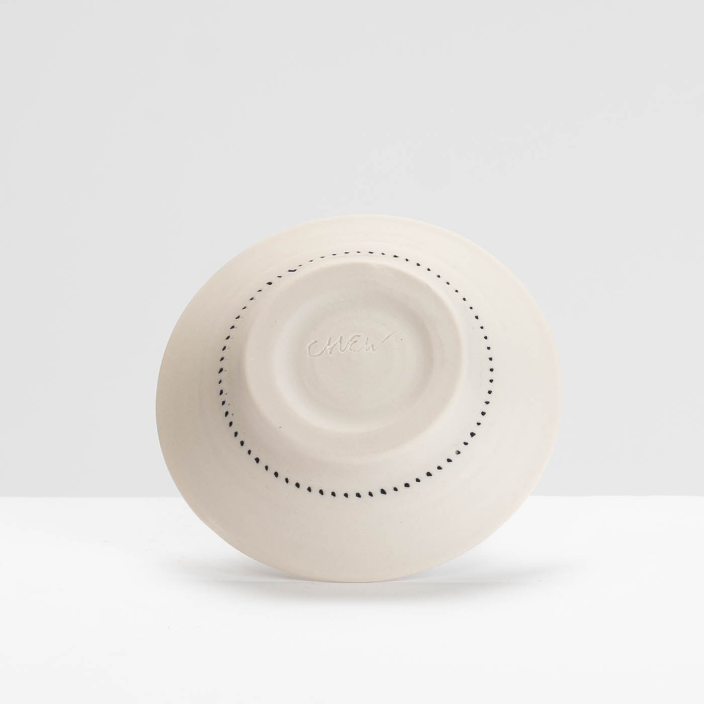 This dish is wheel thrown in porcelain. It is decorated with a variety of resist techniques, sgraffito and marks are drawn through oxides and underglaze colours.