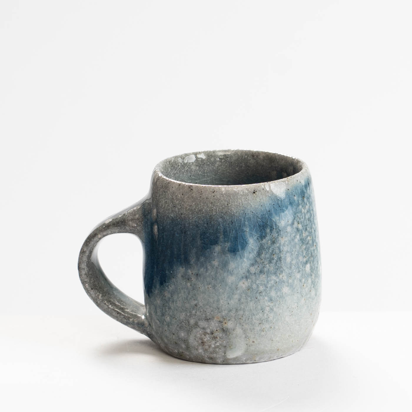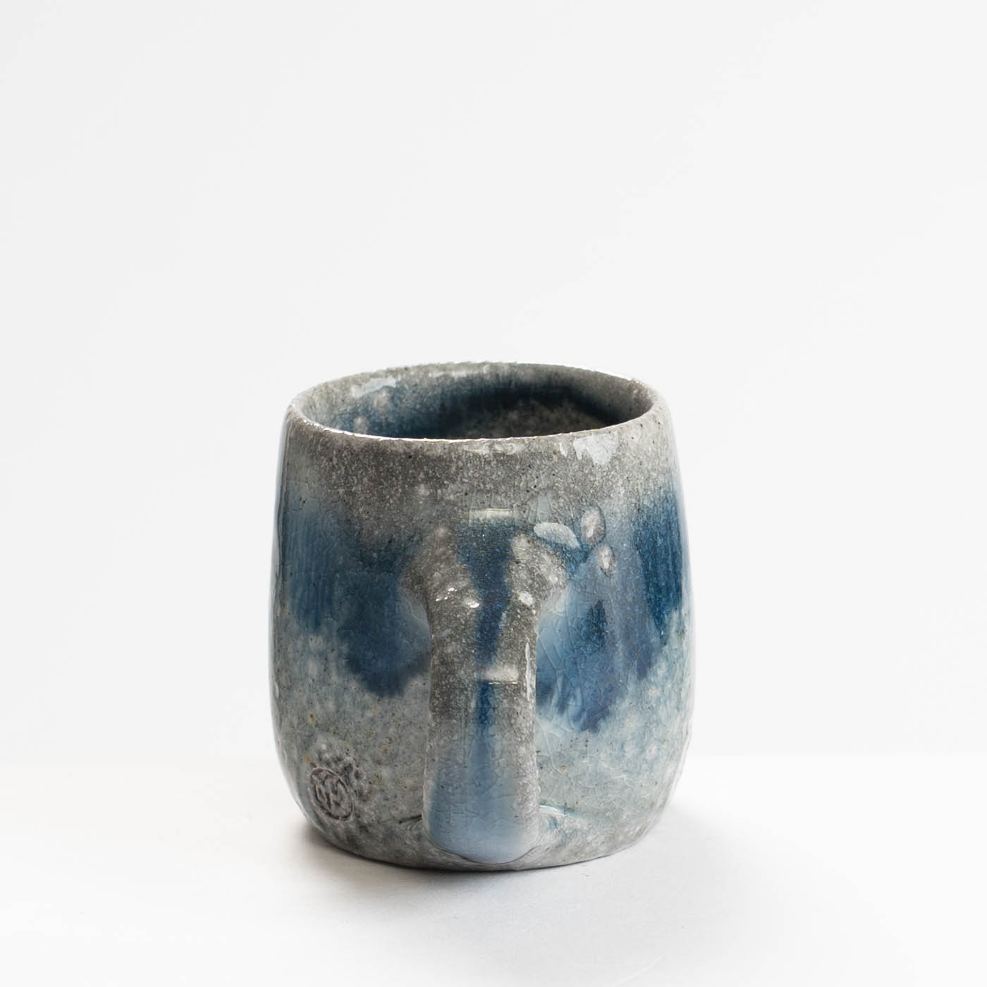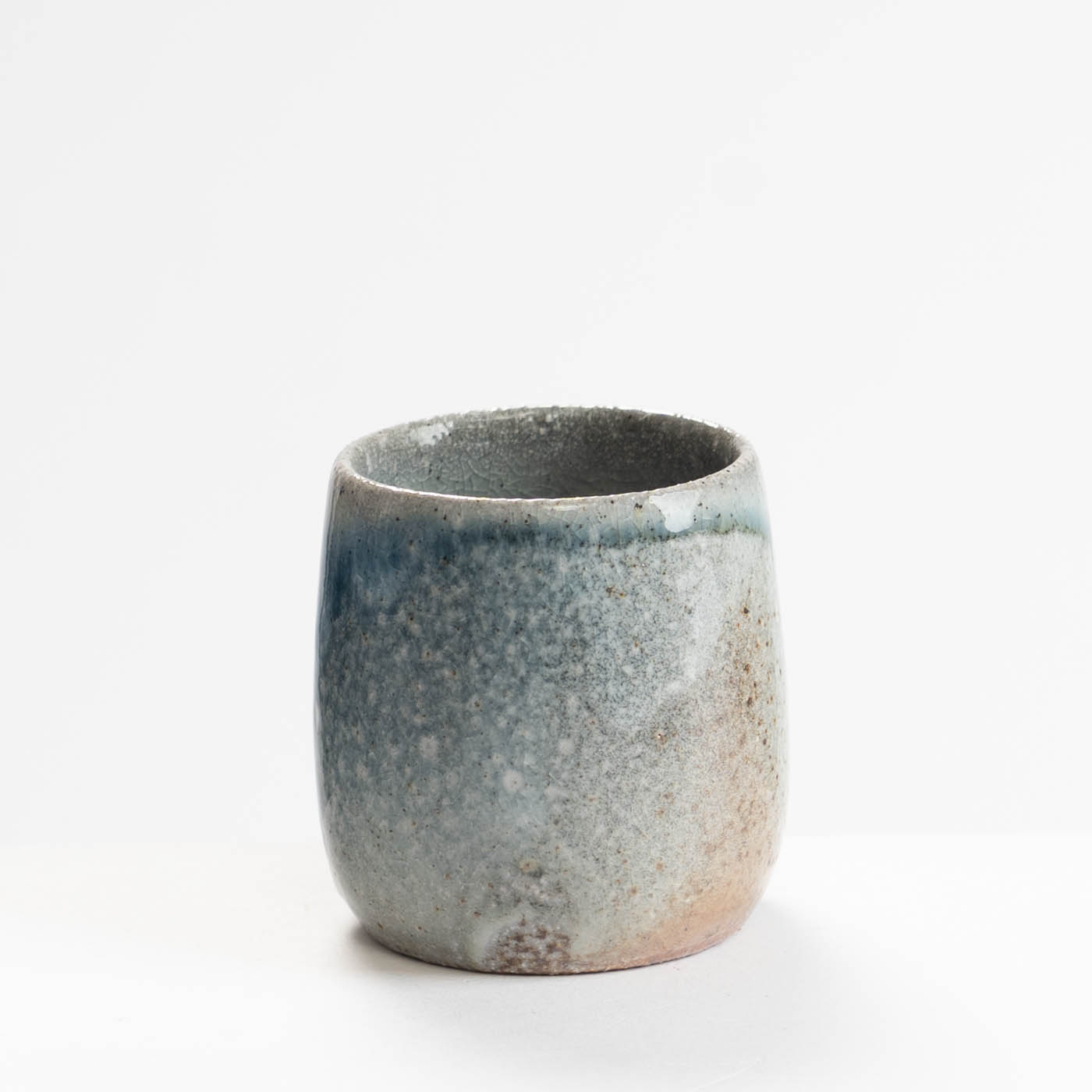 This stoneware cup is wheel-thrown and decorated with slip. It is soda fired, giving richness of colour and highlighting texture.