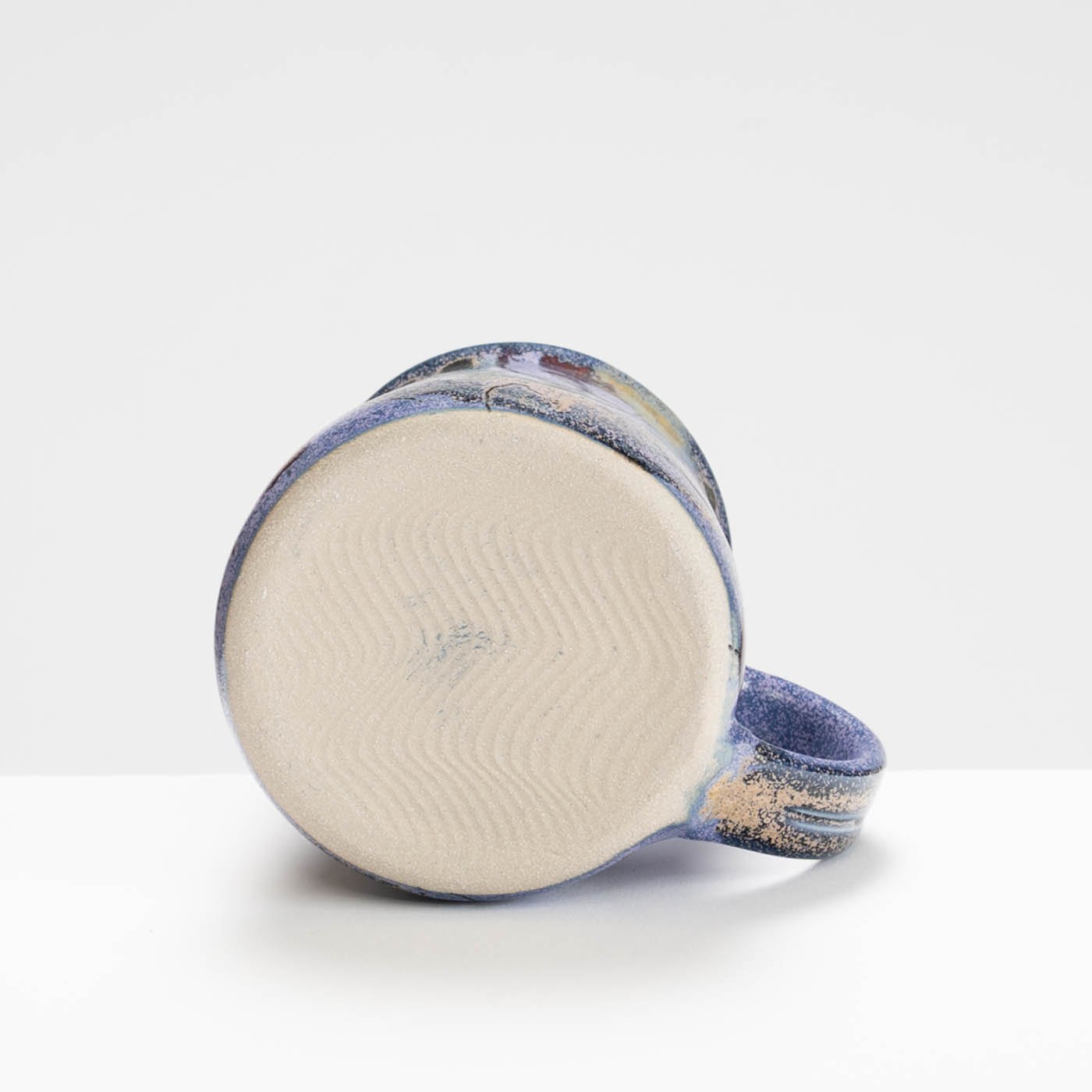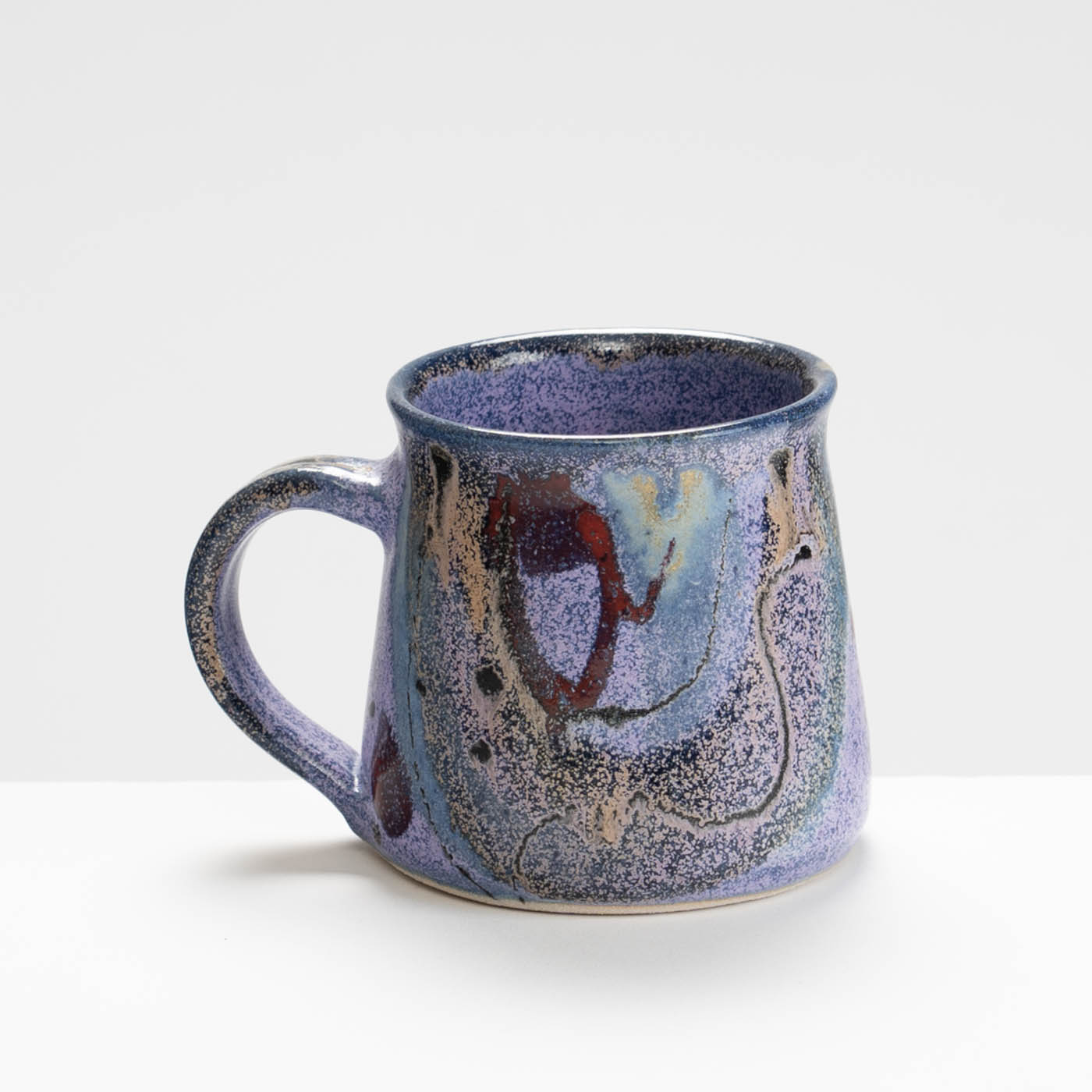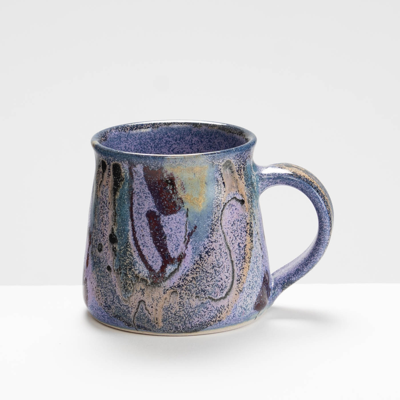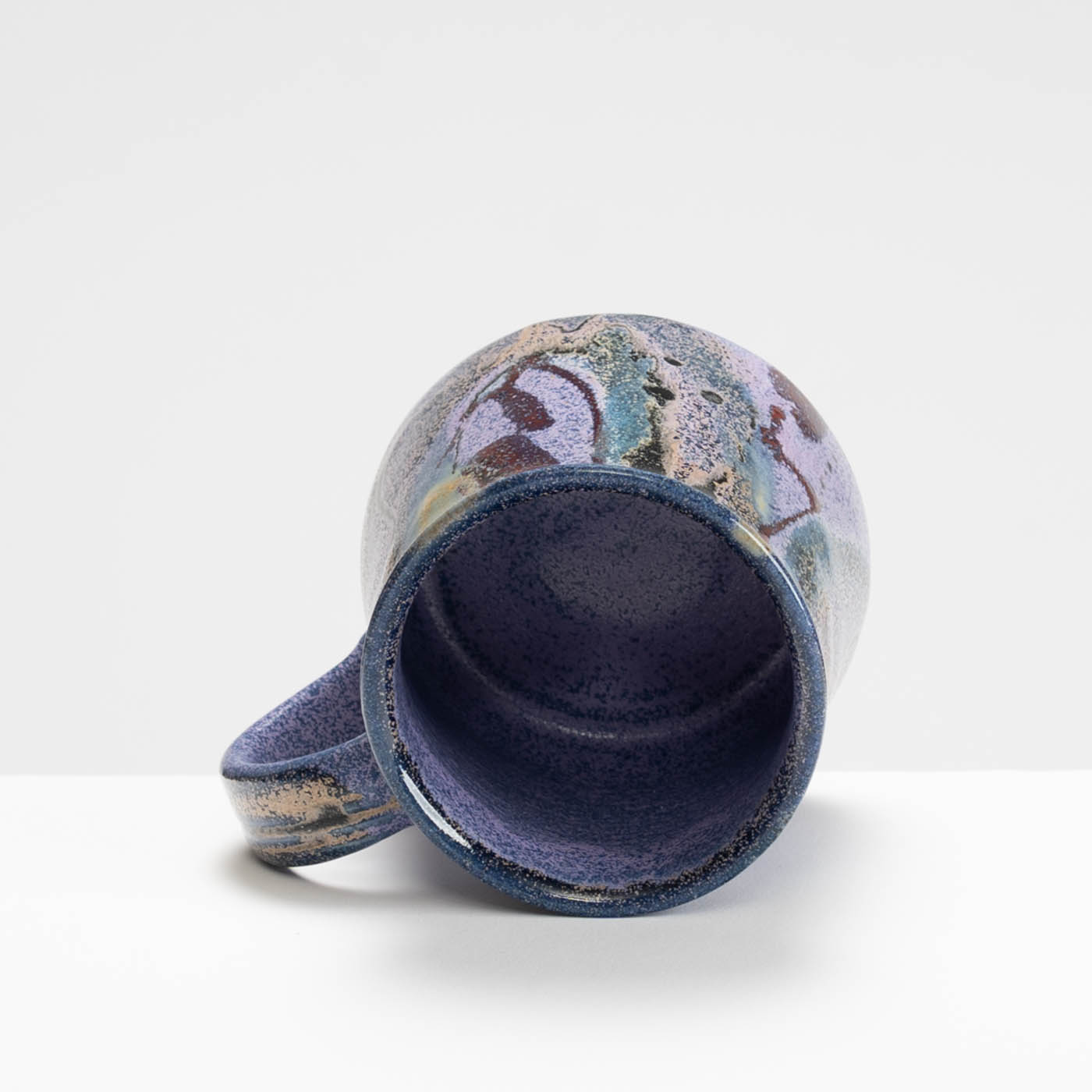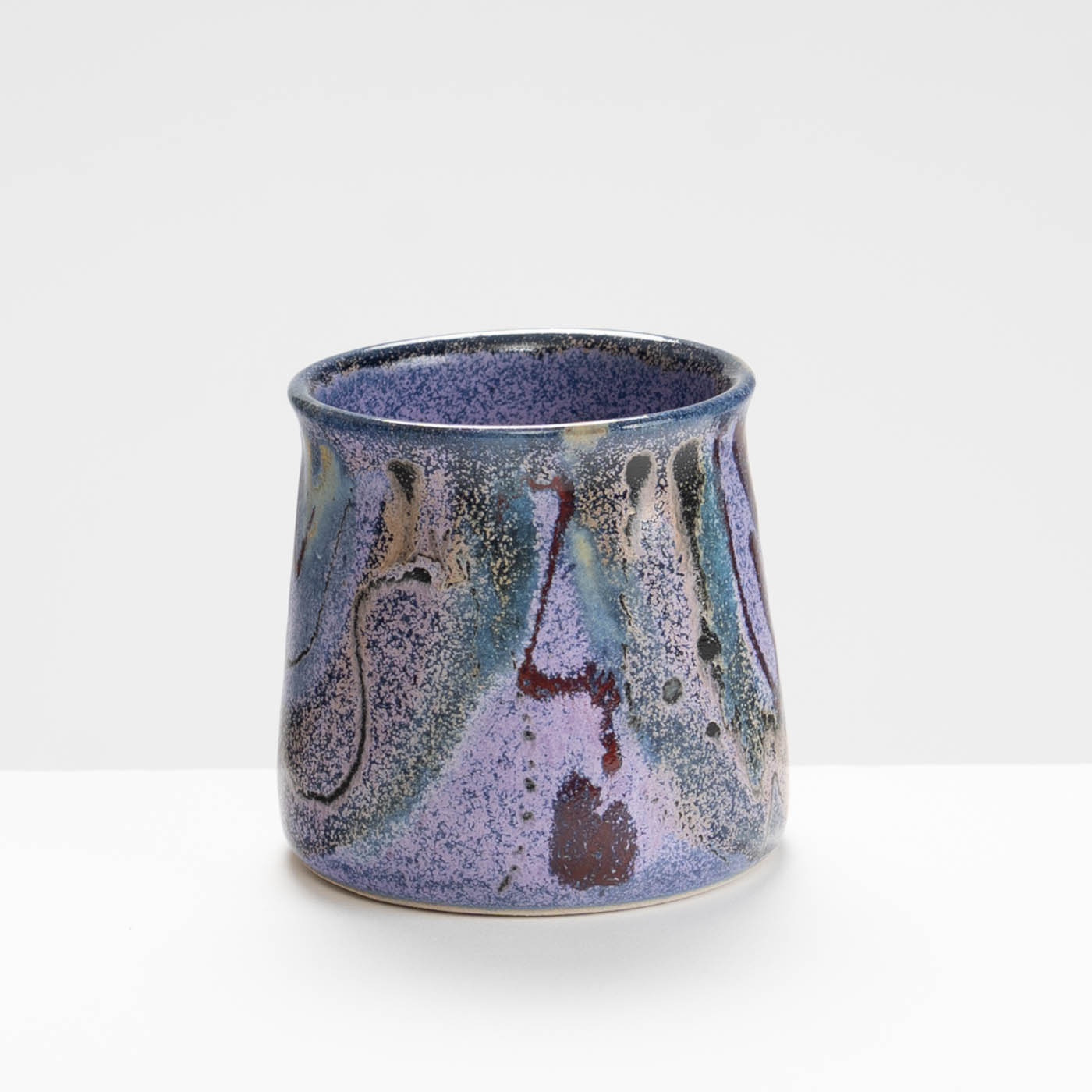 This stoneware mug is wheel-thrown and decorated with free abstract designs using vibrant colourful glazes.
