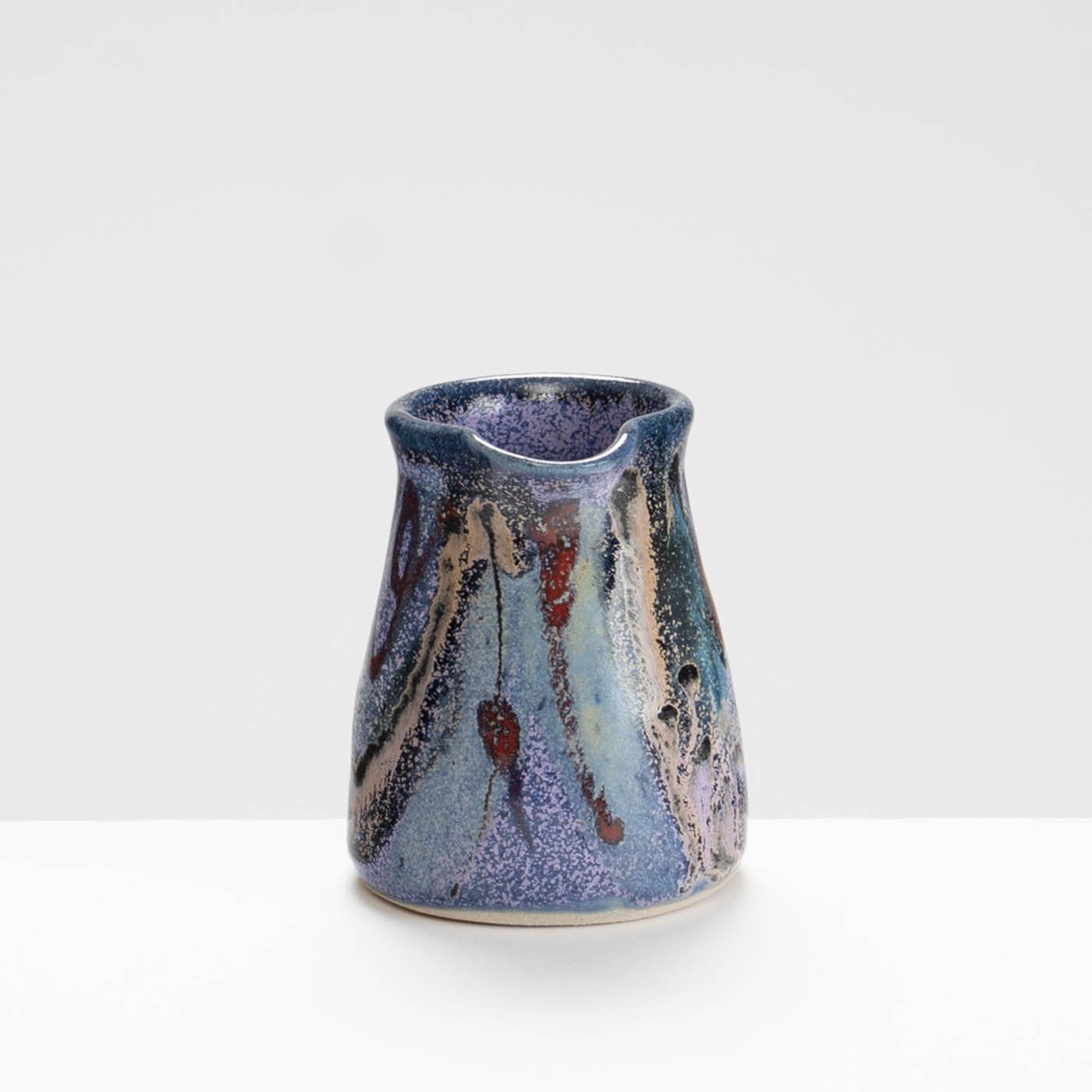 This stoneware jug is wheel-thrown and decorated with free abstract designs using vibrant colourful glazes.