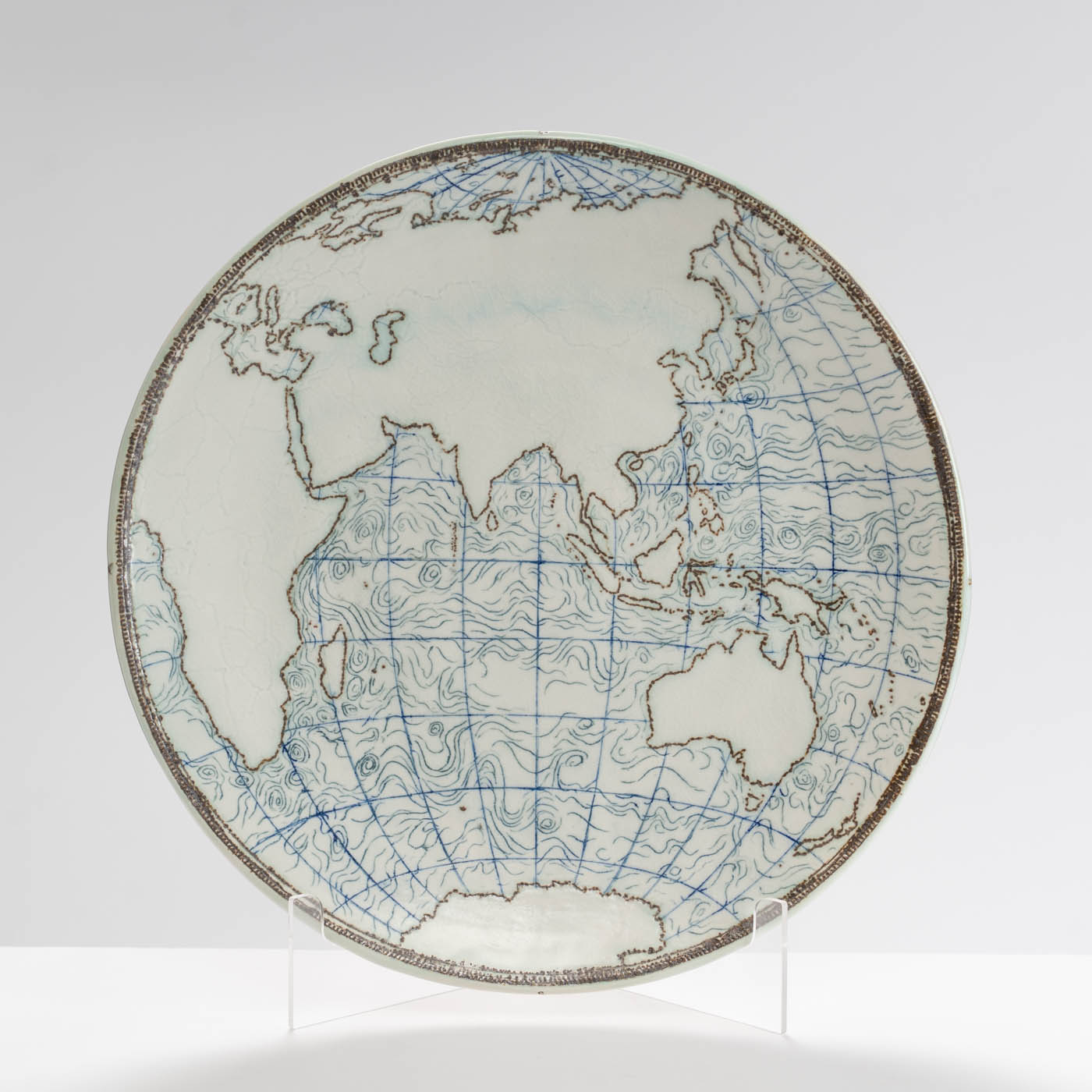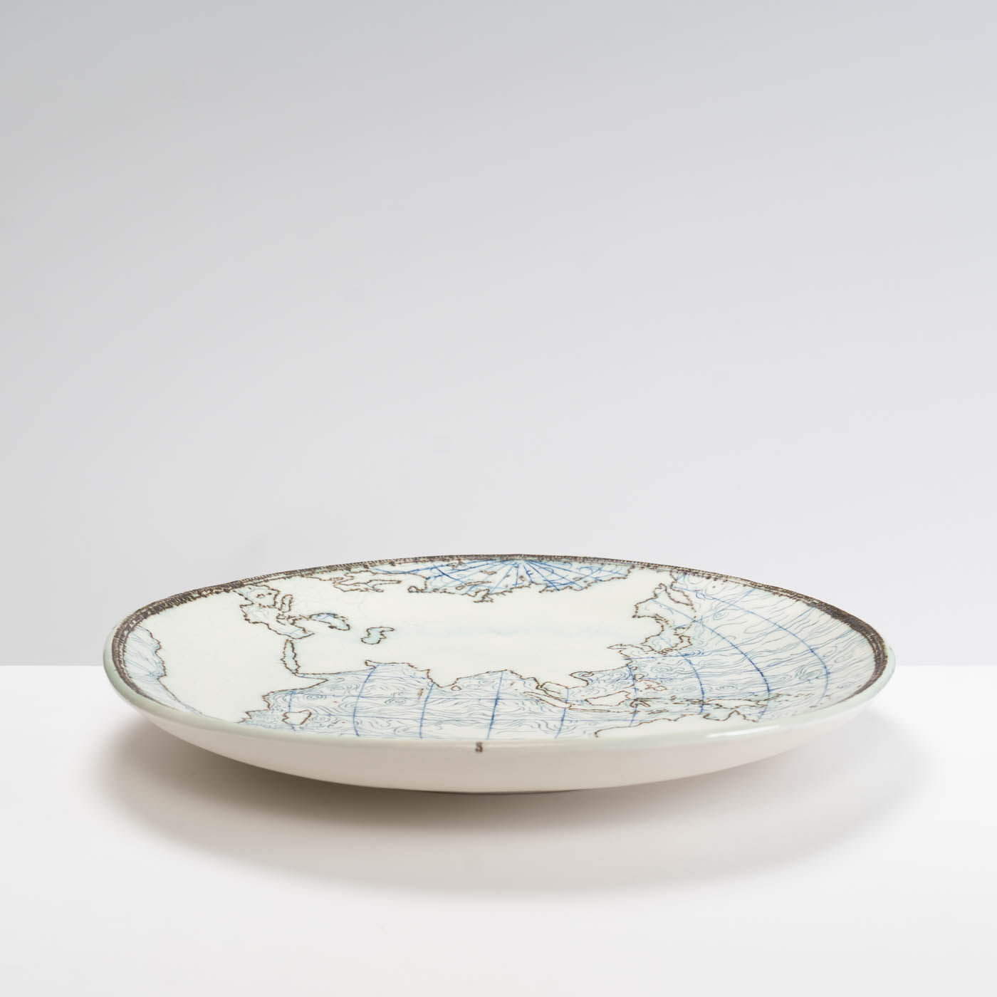 Loraine's background as a map maker informs her ceramics practice. Clay provides a tangible connection to the earth’s surface, through which her work explores how maps shape our sense of place and belonging. Relief maps and domestic-scale vessels are decorated with cartographically accurate drawings. By playing with scale and volume—whether through a pocket globe that places the world in the palm of the hand, or topography with amplified relief—her work addresses specific themes, including environmental and social inequality, and monumental journeys.