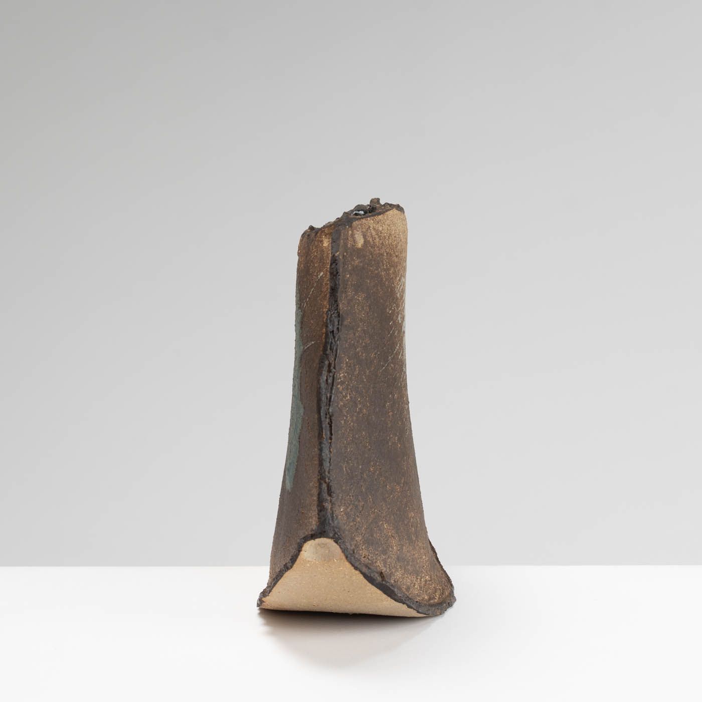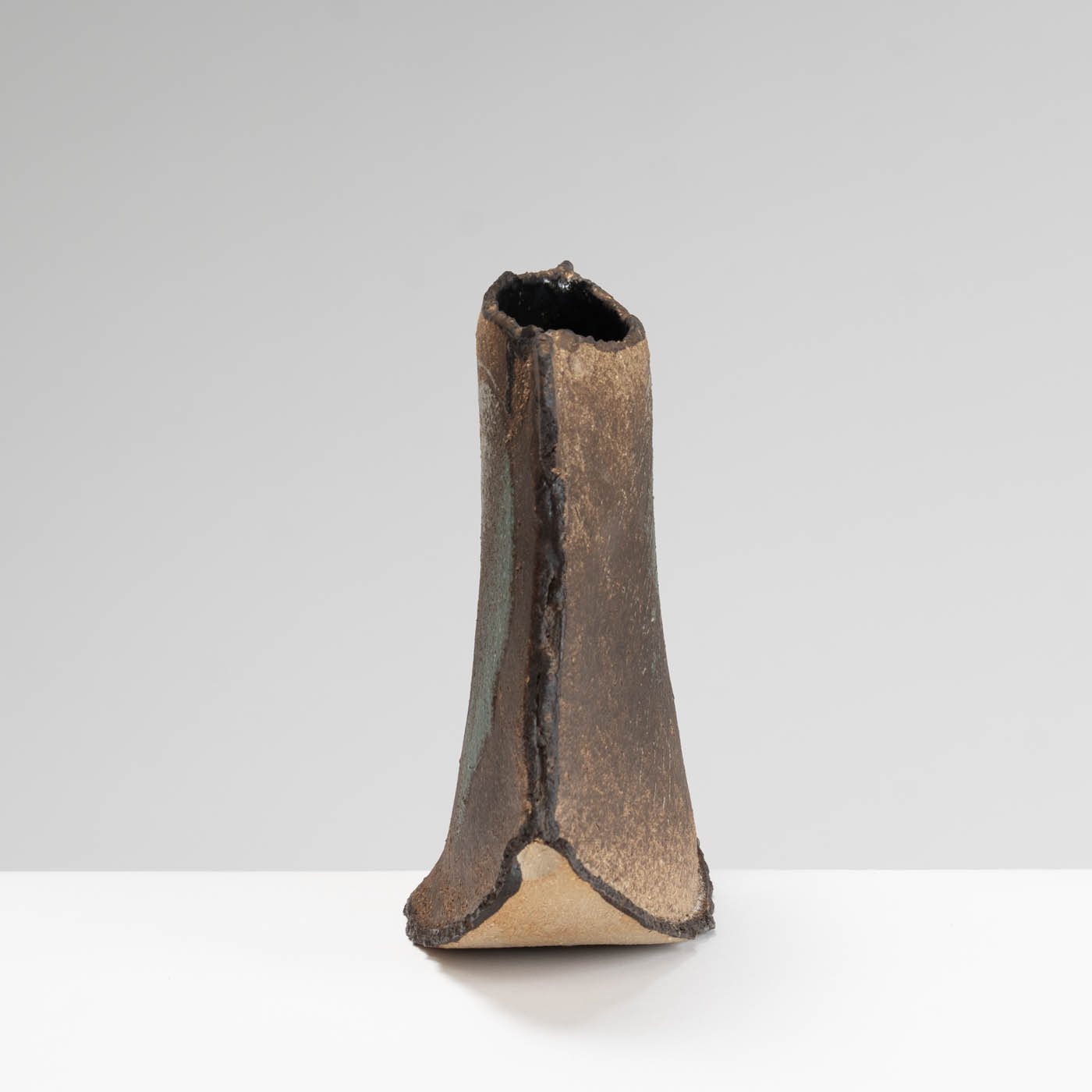 Marcio Mattos became fascinated with clay after seeing an exhibition of tea ceremony bowls at the V&A museum many years ago. He went on to train at Richmond College and later for a degree at Goldsmiths College. He presently creates one-off sculptural vessels and plaques in black stoneware and porcelain paper clay with dry-glazed textural surfaces and brushed decoration.