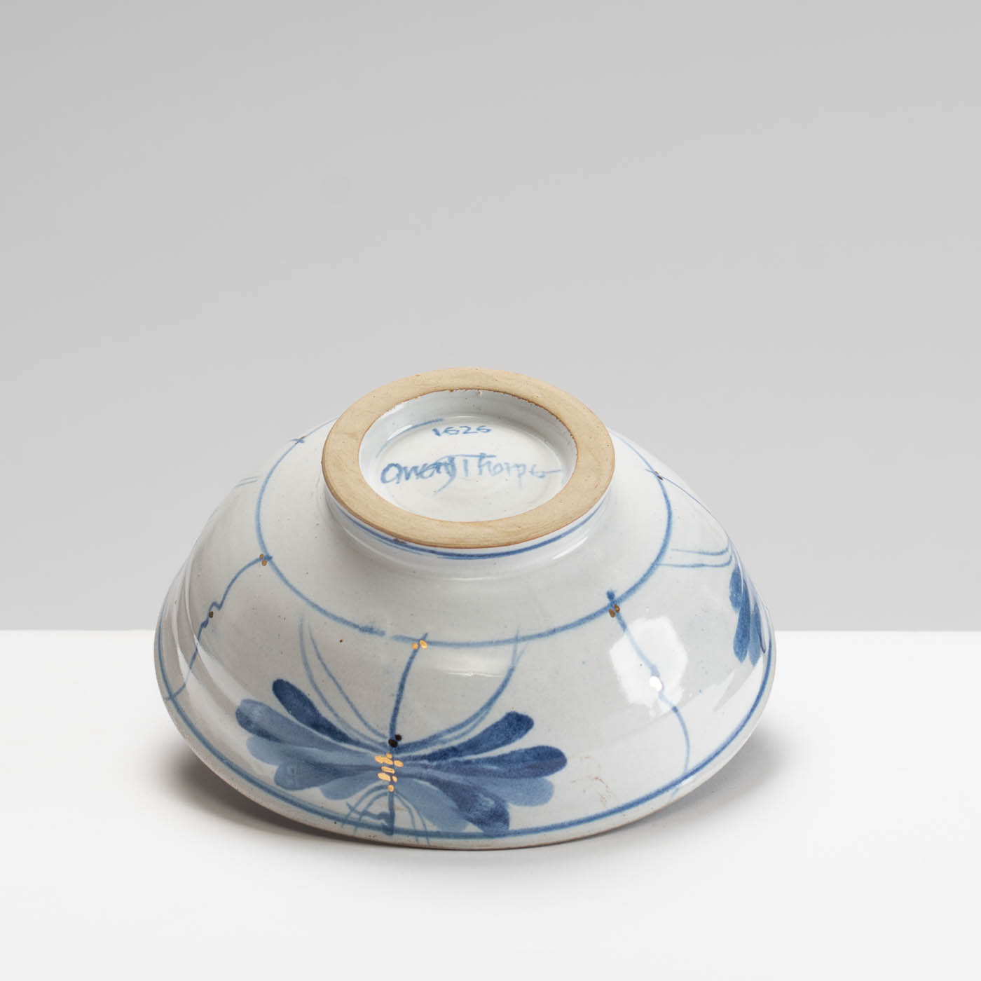 Since 2000 Owen Thorpe has been producing ‘families’ of pots using recurring themes and he has been making bowls and plates with inscriptions. All his work is made using a soft stoneware, high fired with occasional further enamel firings.