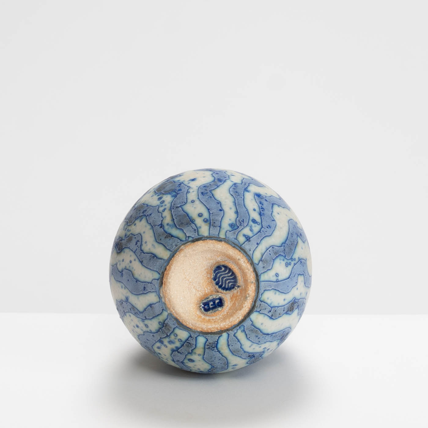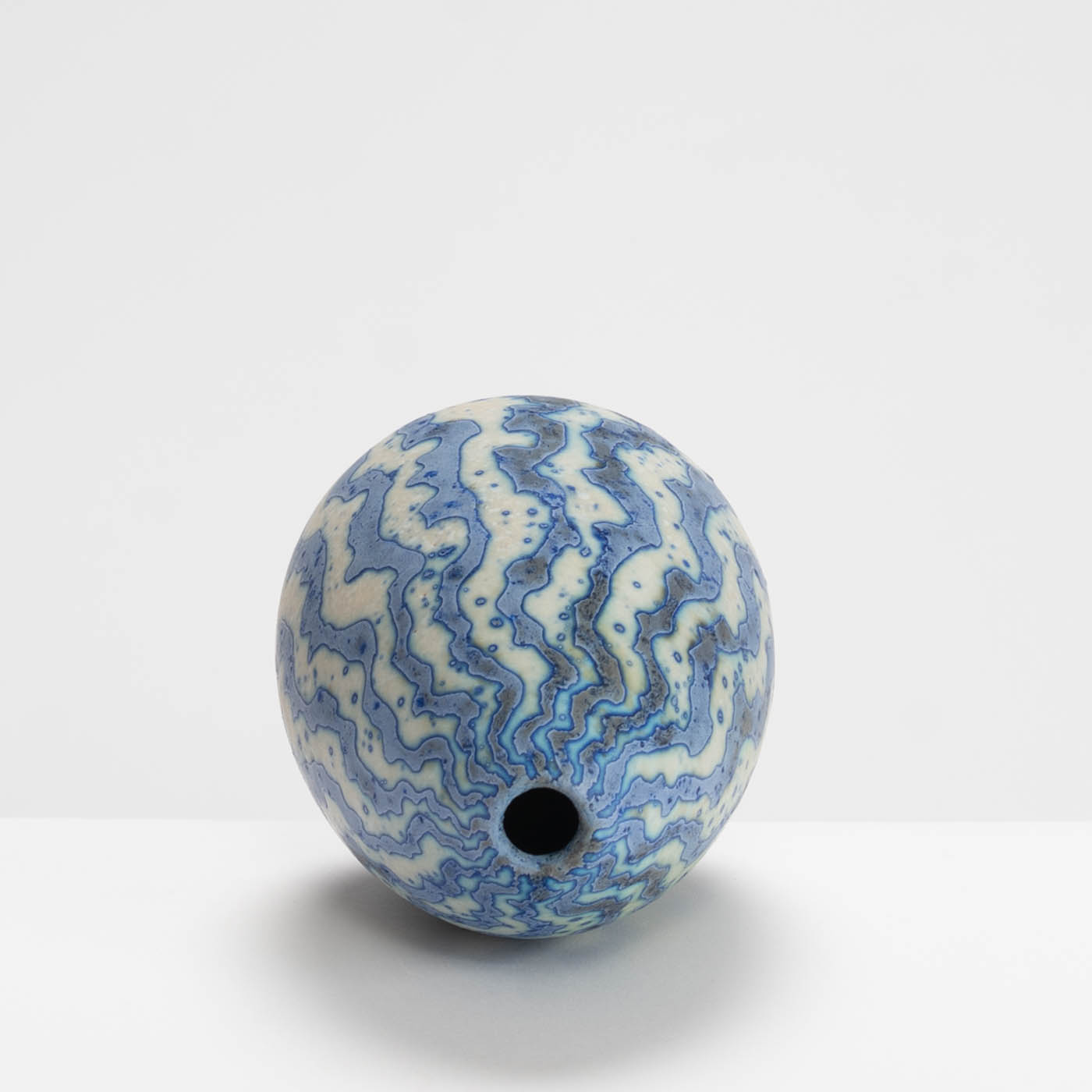 Contrasting coloured markings with a wavy design envelop this vessel, radiating from the base to the opening, creating a naturally mesmerising effect. Wheel-thrown and decorated using Peter Beard’s signature wax resist technique.