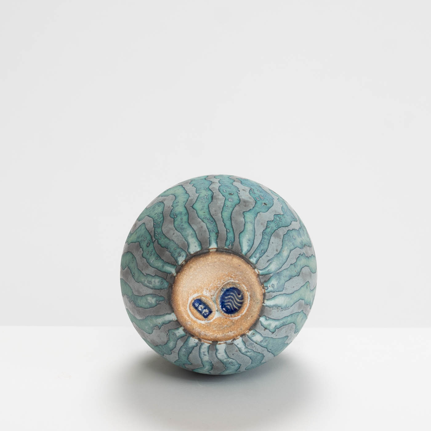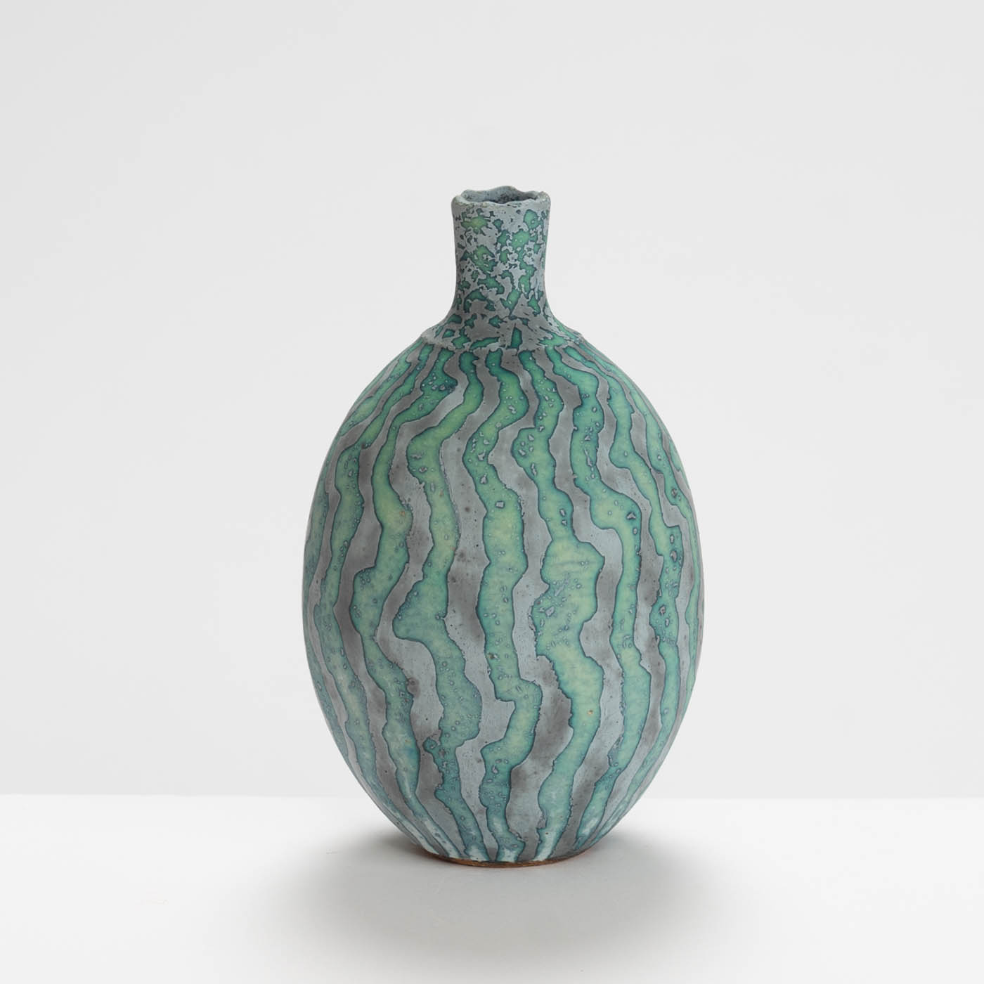 Contrasting coloured markings with a wavy design envelop this vessel, radiating from the base to the opening, creating a naturally mesmerising effect. Wheel-thrown and decorated using Peter Beard’s signature wax resist technique.