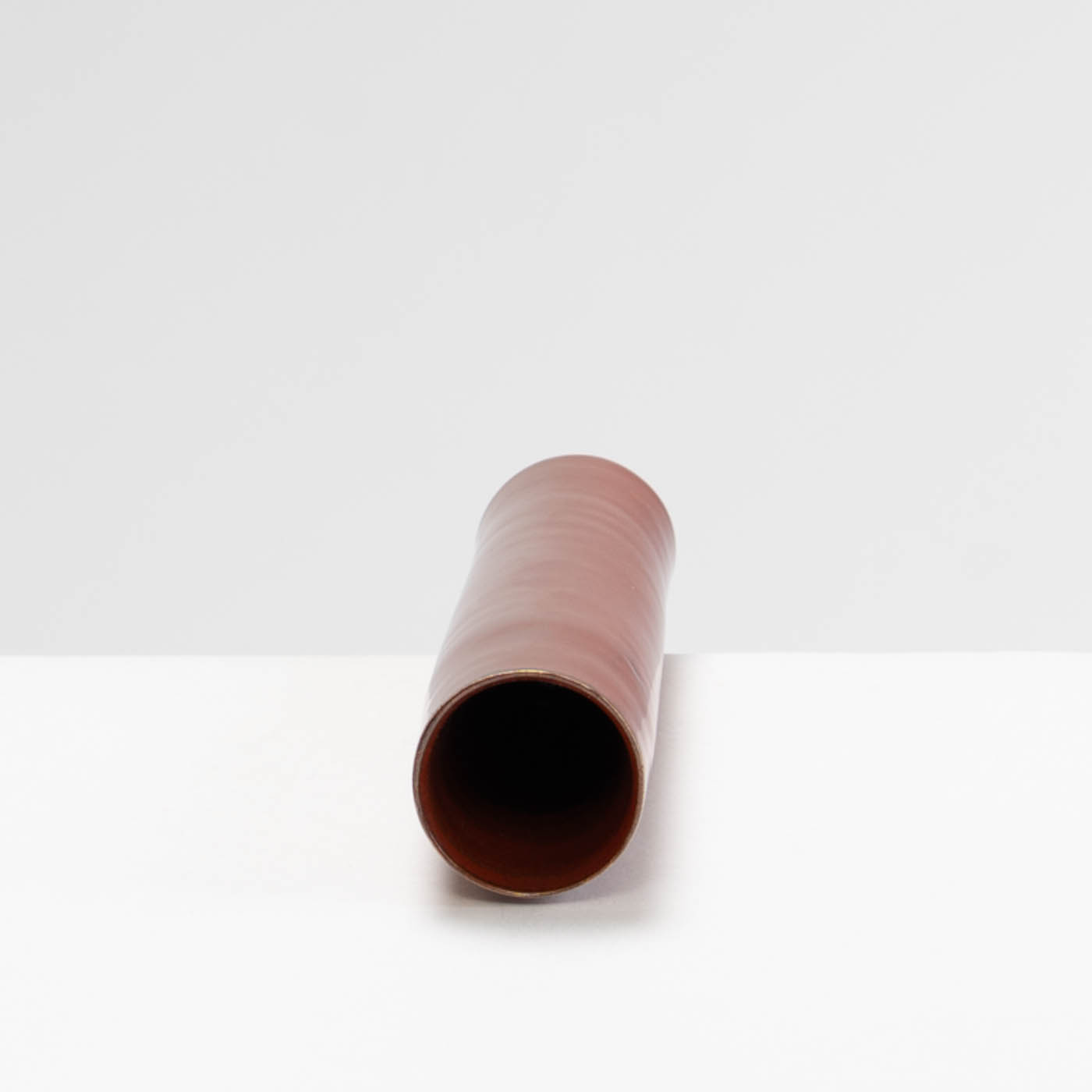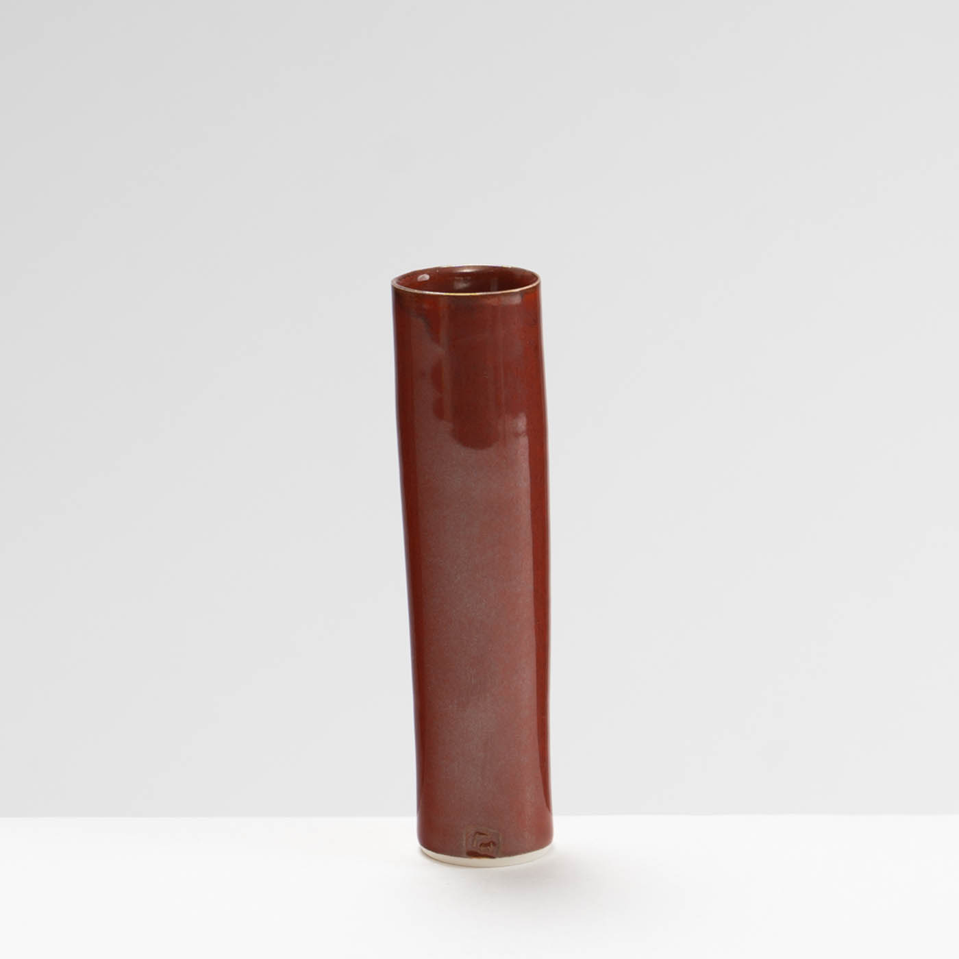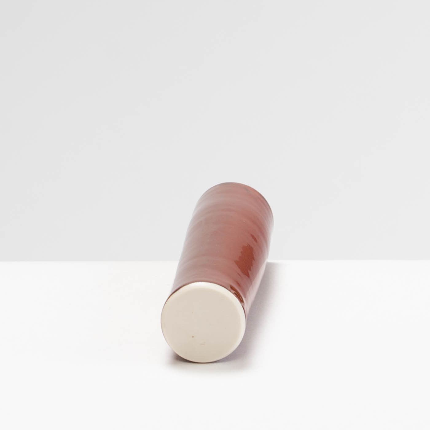 This vase is wheel-thrown in porcelain. Inspired by the classical porcelain of China and Japan, it is decorated with a burnt red glaze.