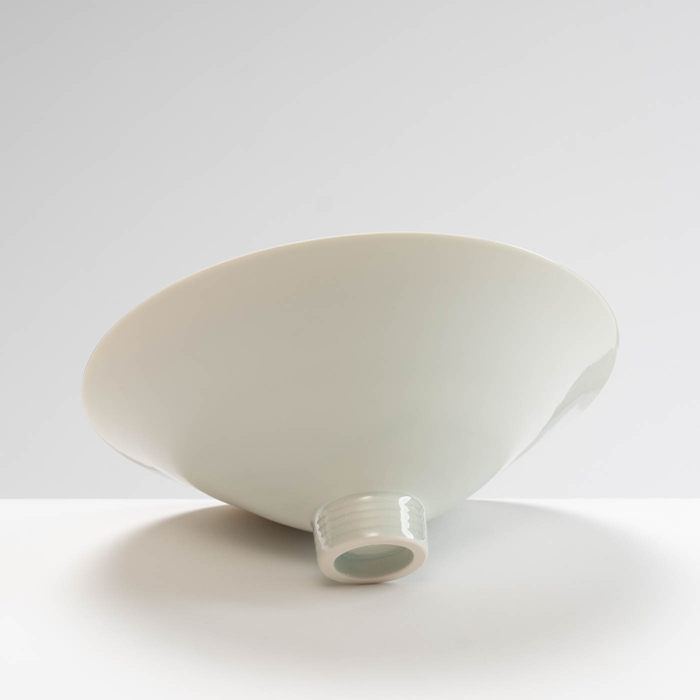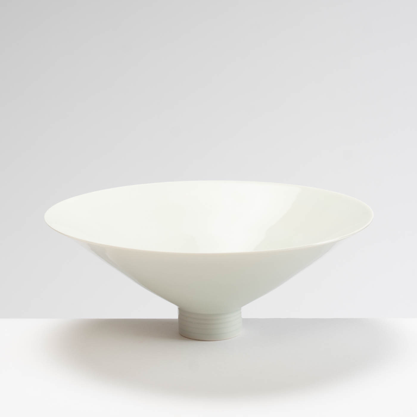 Robyn creates finely thrown vessels in porcelain, for both decoration and use. She is inspired by the combination of delicacy and strength in porcelain. She creates pieces whose pared-back forms evoke a sense of balance and harmony, whether in a bowl wide open to the skies or a moon jar in its spherical containment. Surface decoration is minimal - an incised line around a narrow foot, or a slip decoration to add a dynamic to the stillness of a moon jar.