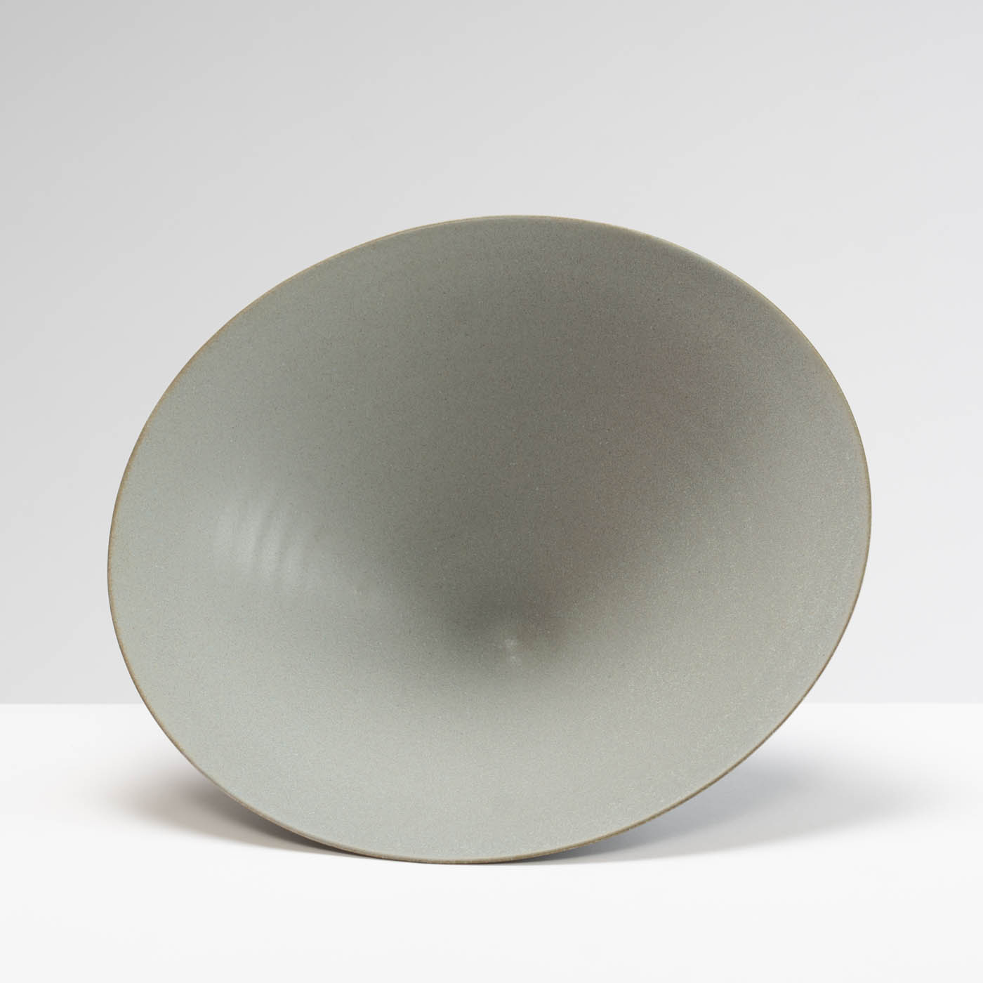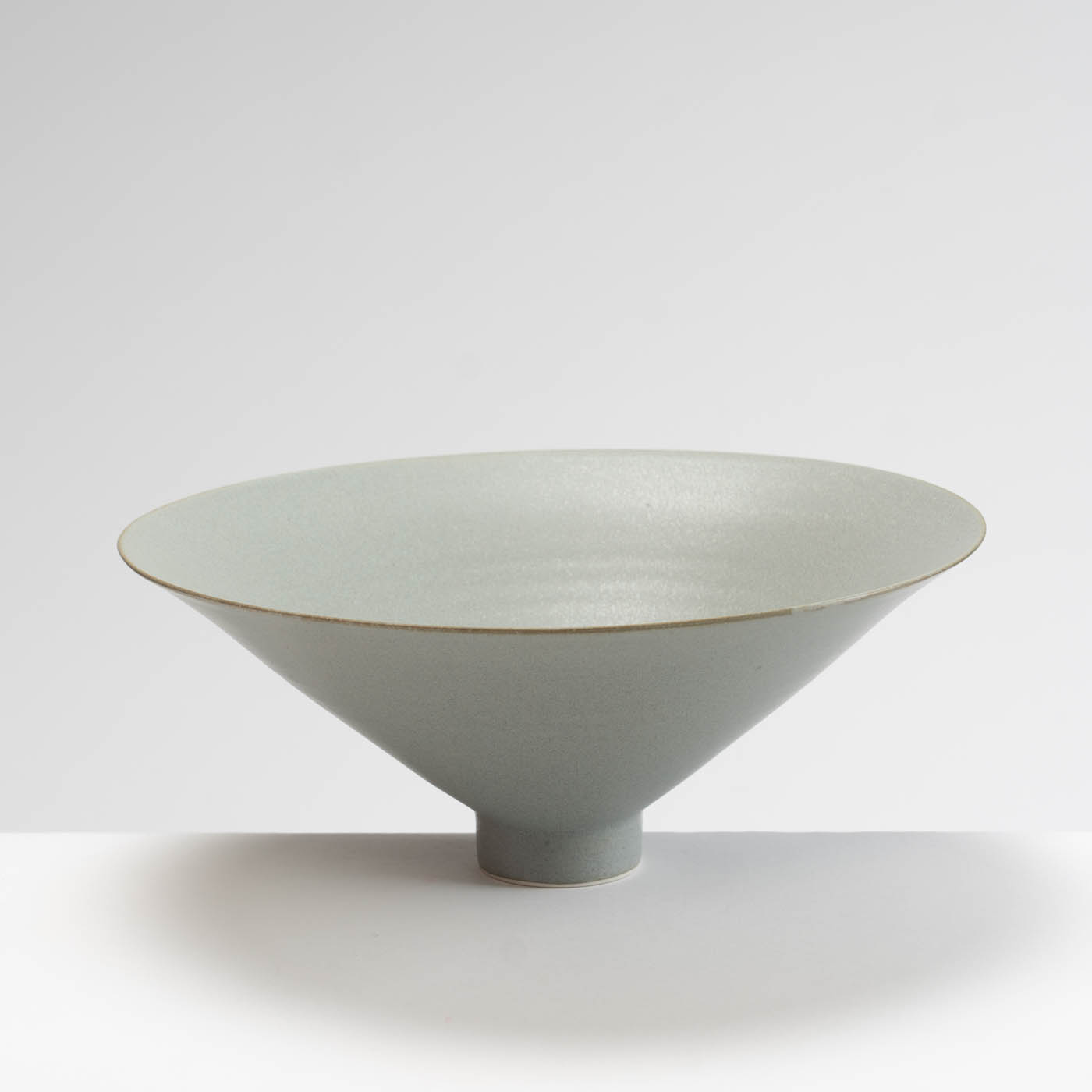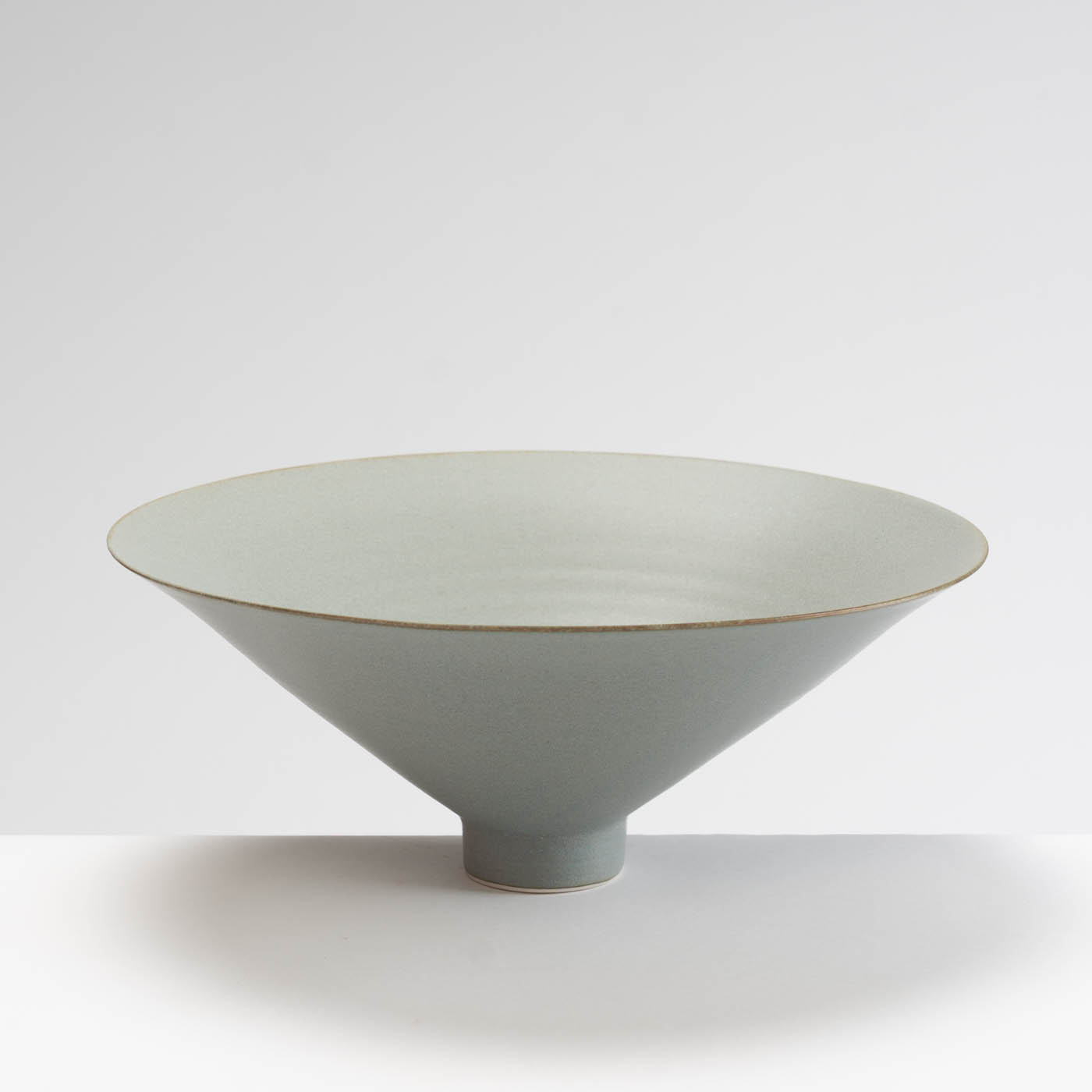This bowl with a narrow foot is wheel-thrown in porcelain. Inspired by the classical porcelain of China and Japan, it is decorated with a blue/grey glaze.