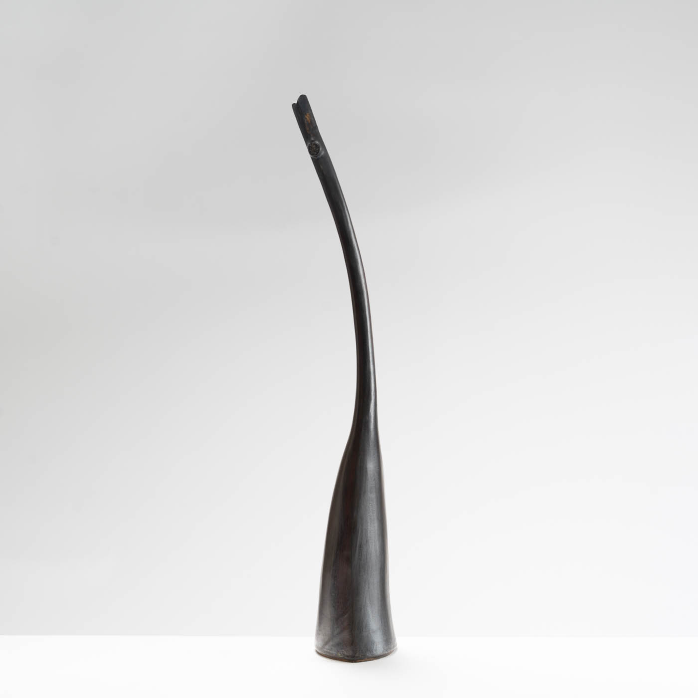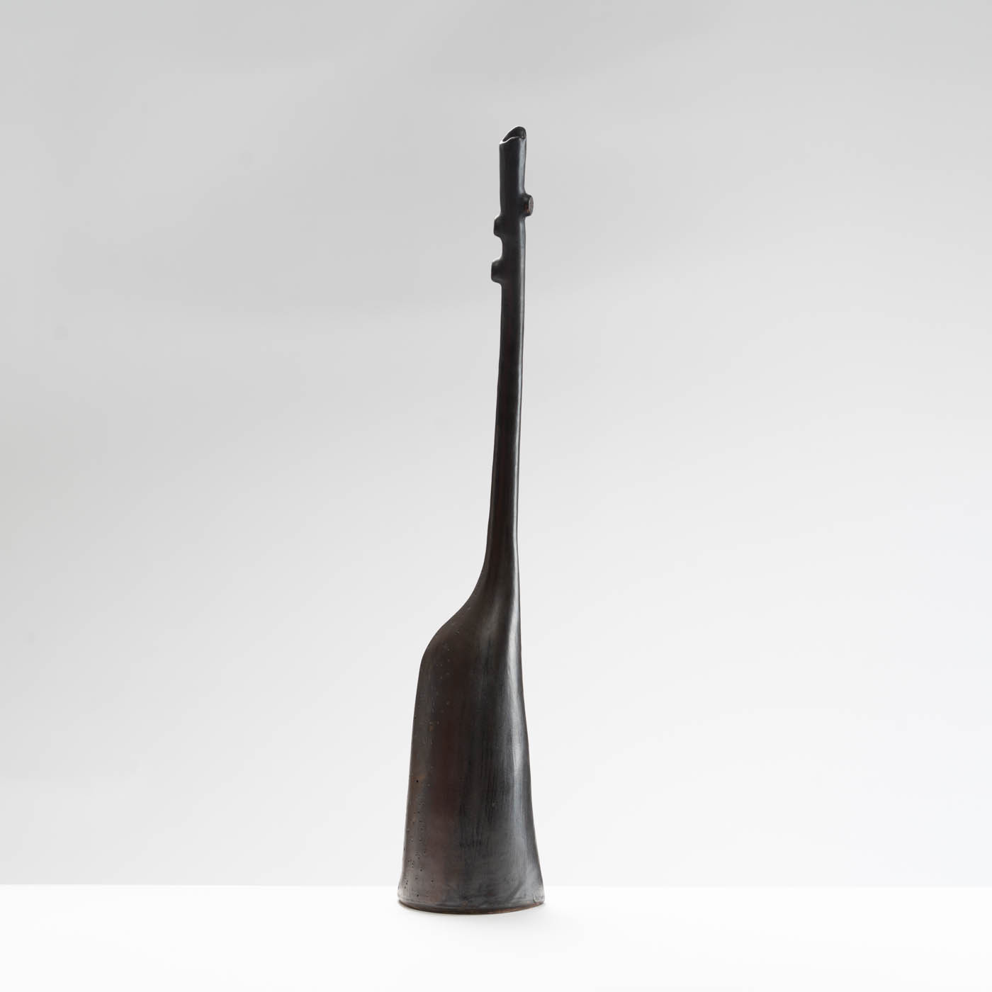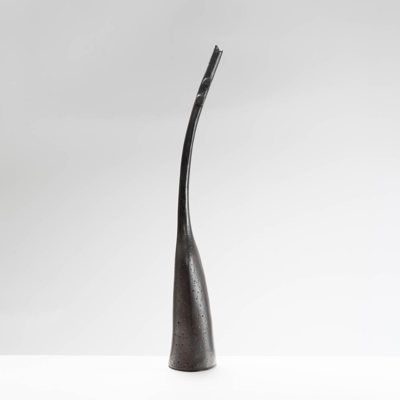 Sue’s work is inspired by the fragility and hidden strength found within the natural world. Deliberate junctions are made by breaking and re-joining the form where collars or shoulders then evolve. This sculptural vessel is coil-built with stoneware clay. It is decorated with texture, brushed with slips, and finished with glaze.