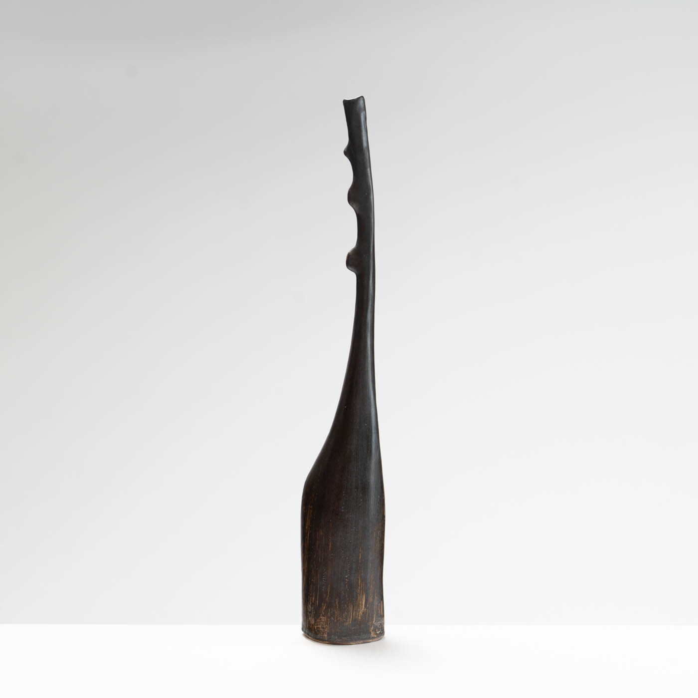 Sue’s work is inspired by the fragility and hidden strength found within the natural world. Deliberate junctions are made by breaking and re-joining the form where collars or shoulders then evolve. This sculptural vessel is coil-built with stoneware clay. It is decorated with texture, brushed with slips, and finished with glaze.