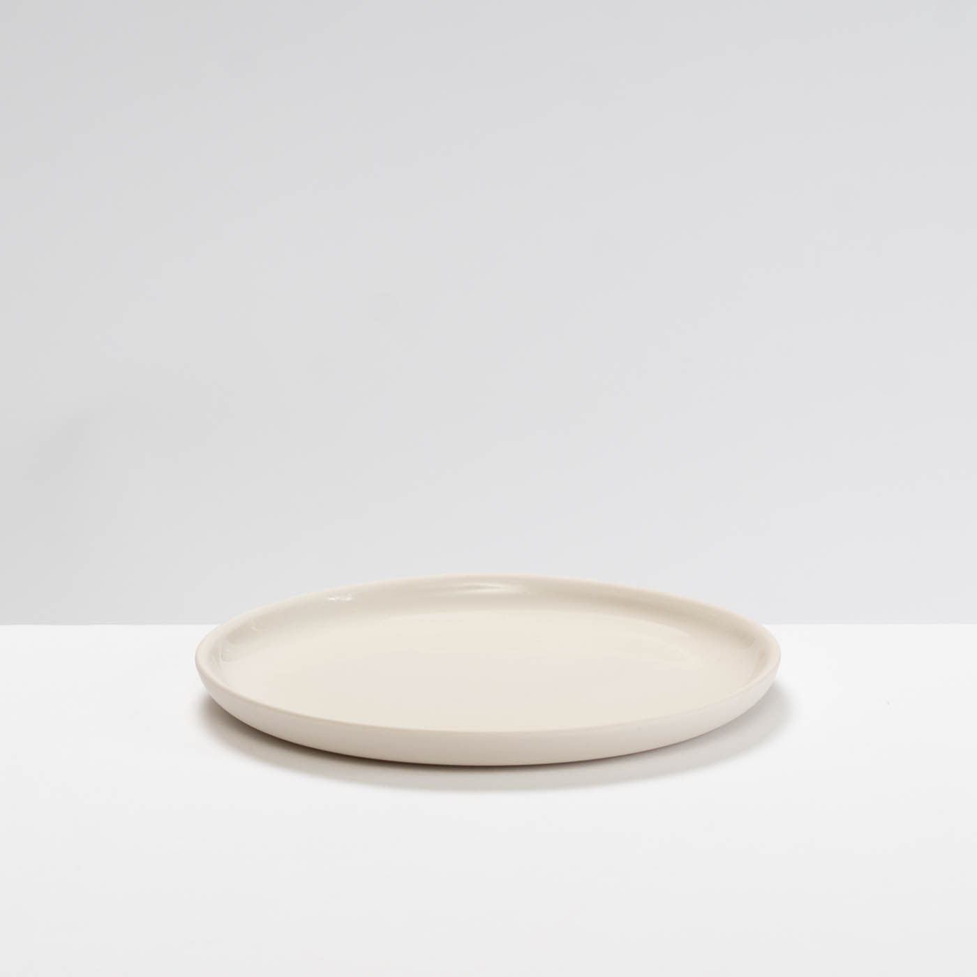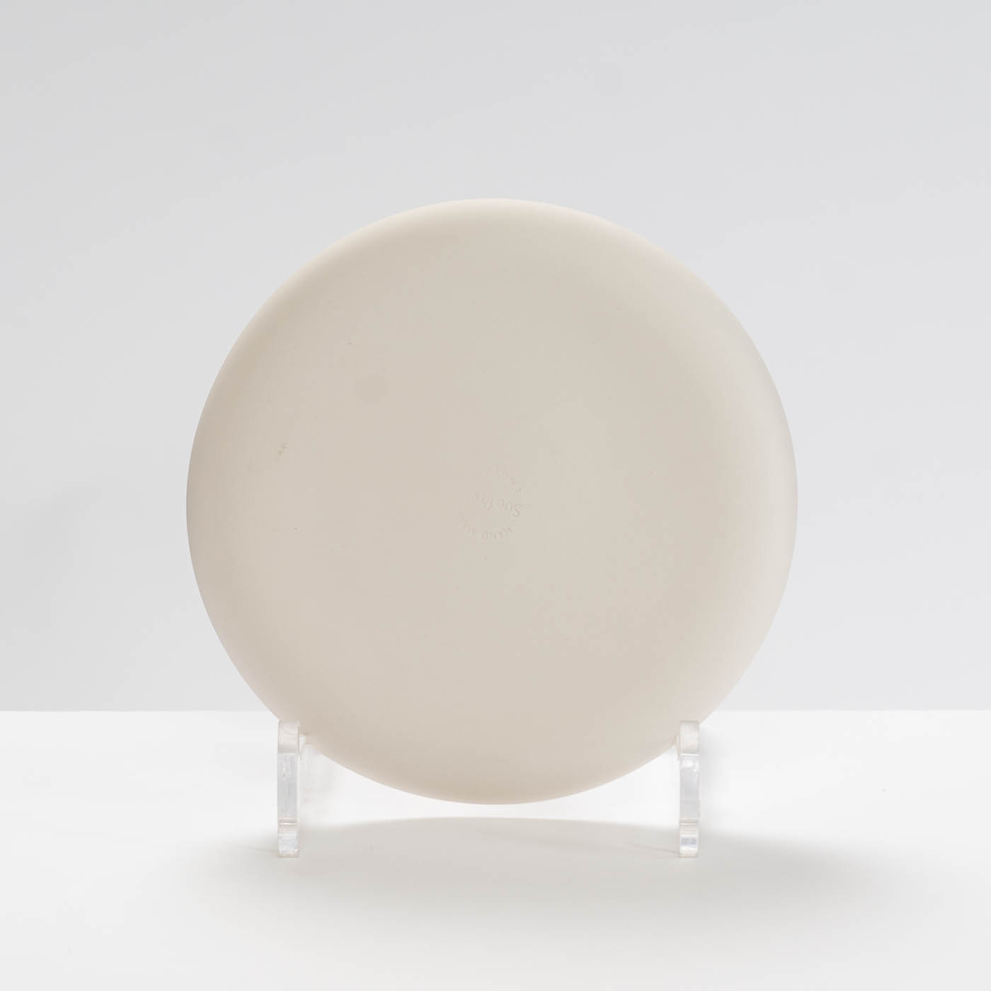 This white porcelain plate is slip-cast. Its minimalist form is elevated by Sue’s soft pastel colour palette, a silky polished exterior, and a glazed interior, making the vessel both elegant and fully functional.