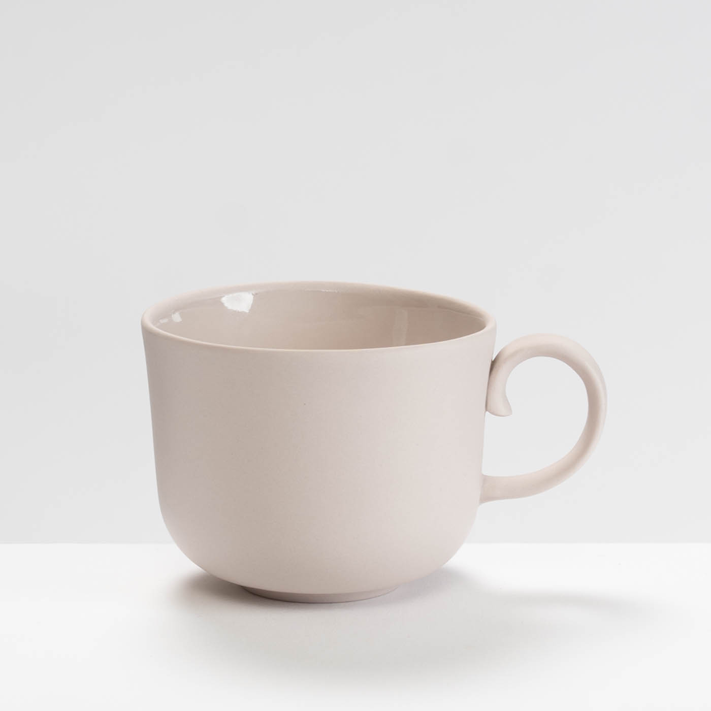 This lilac porcelain cup is slip-cast. Its minimalist form is elevated by Sue’s soft pastel colour palette, a silky polished exterior, and a glazed interior, making the vessel both elegant and fully functional.