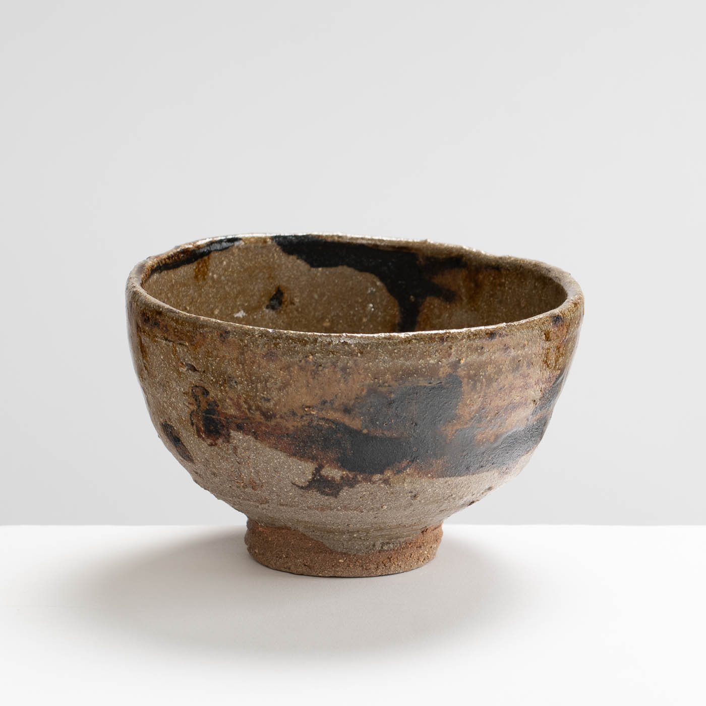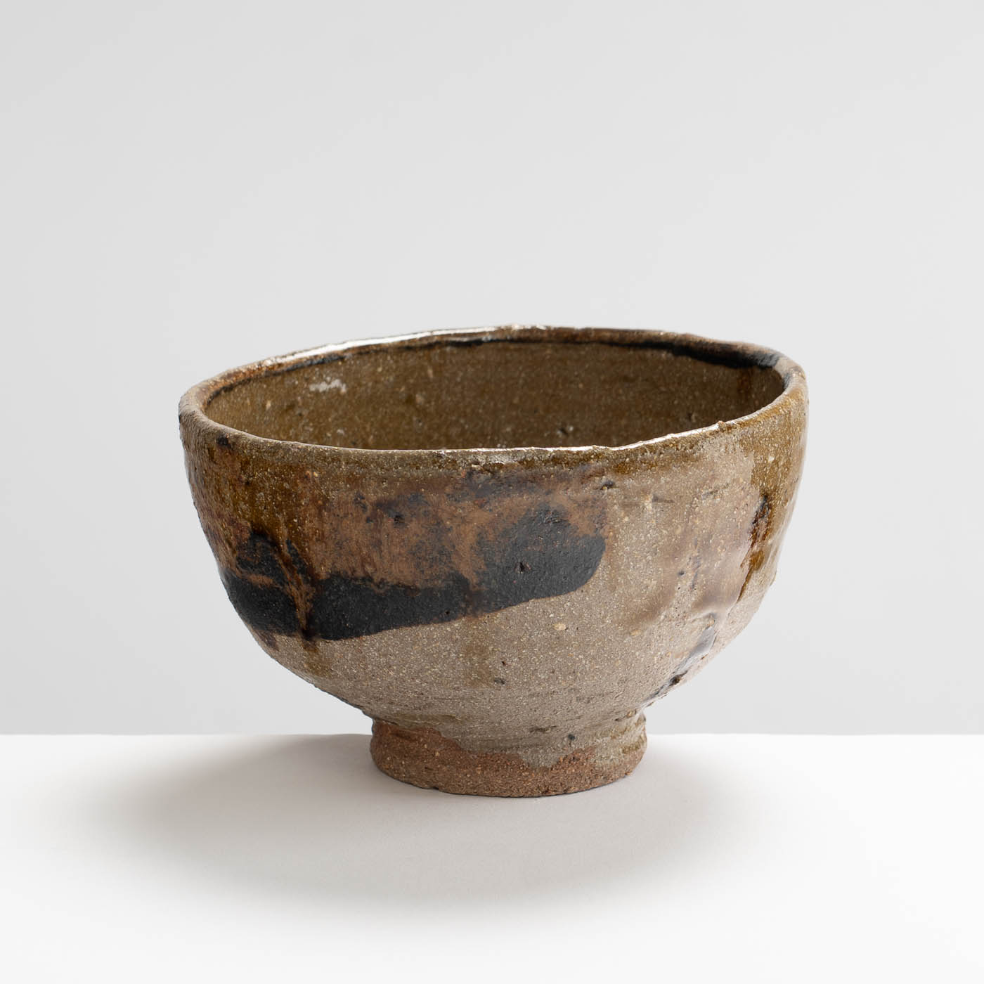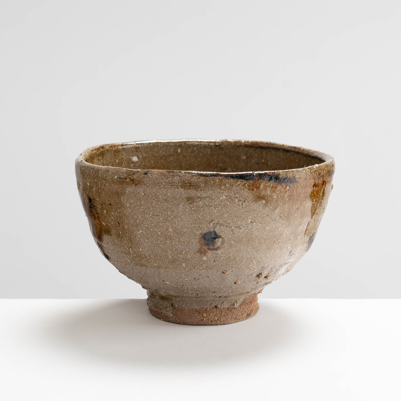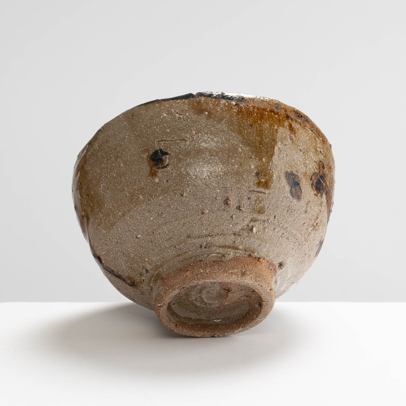 This low fired teabowl is wheel thrown off the hump with clay extracted from the River Ouse. Tarragon collects and works with local clays and local ash, and decorates in an immediate way with simple oxides and glazes, often with motifs of waves, water, and the sea.