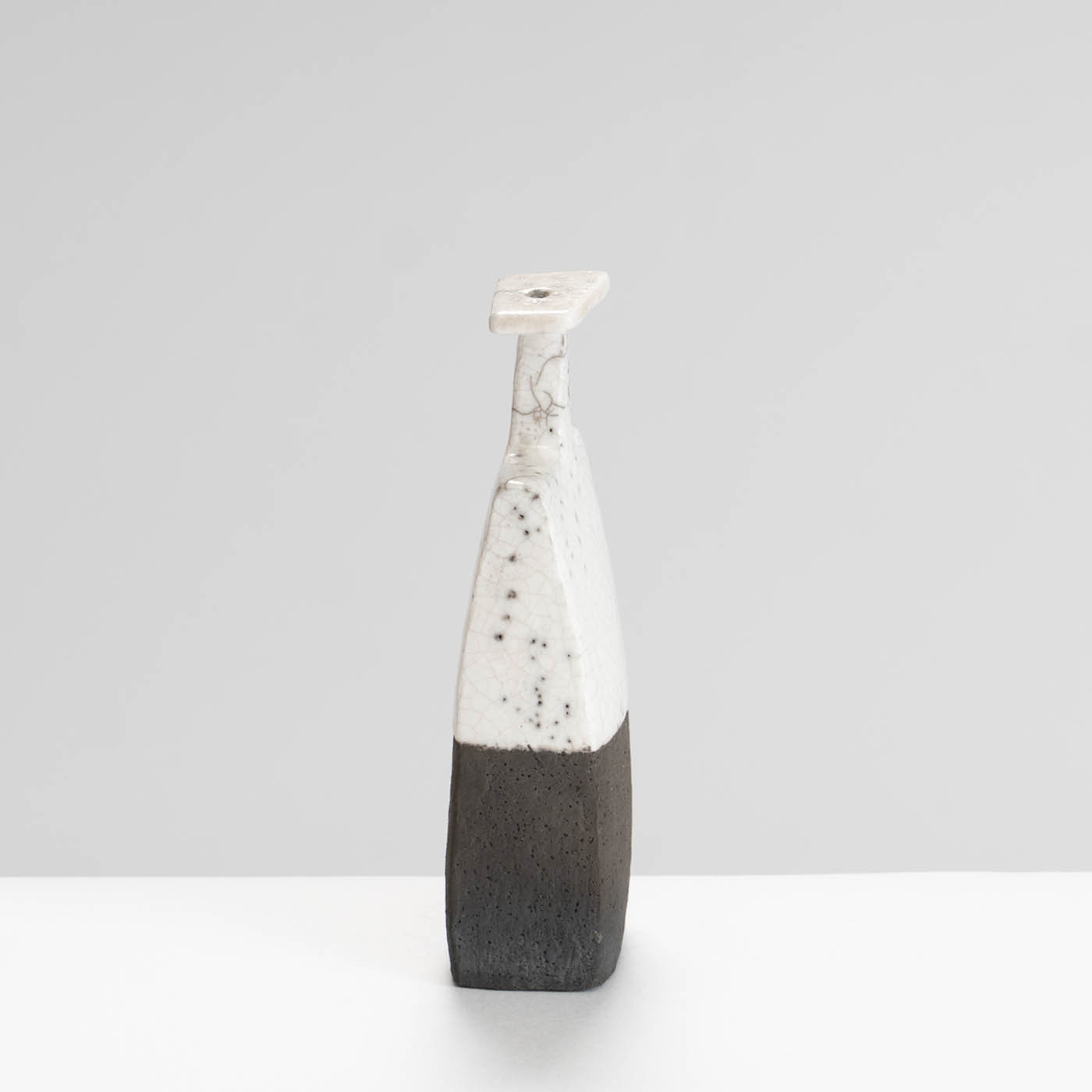 Despite specialising in making one-off slab-built pots during her college years, Ulla established herself as a ceramic jewellery maker for many years. She has however, returned to making individual sculptural pieces. The pots that she now makes are a playful take on classic container forms, particularly the bottle. The shapes have an animated, even anthropomorphic air about them and work well in pairs or in groups.