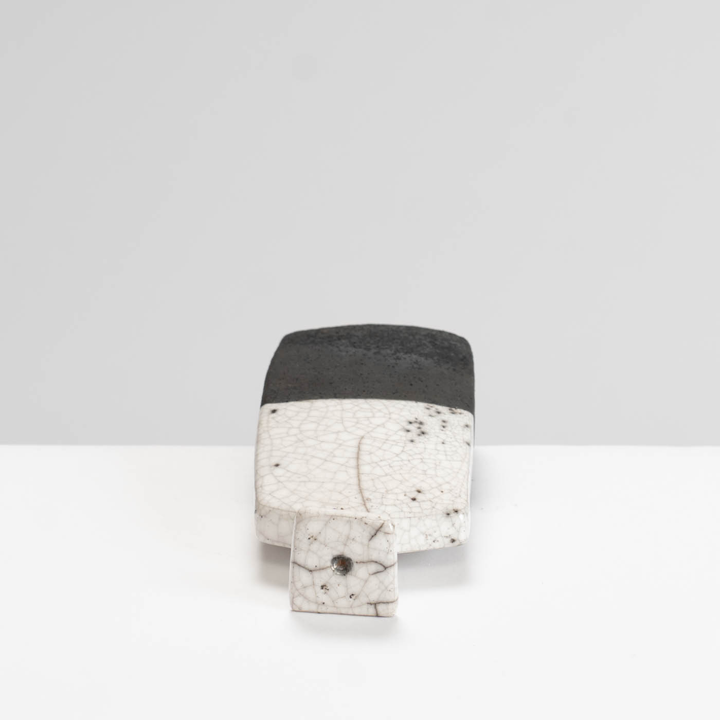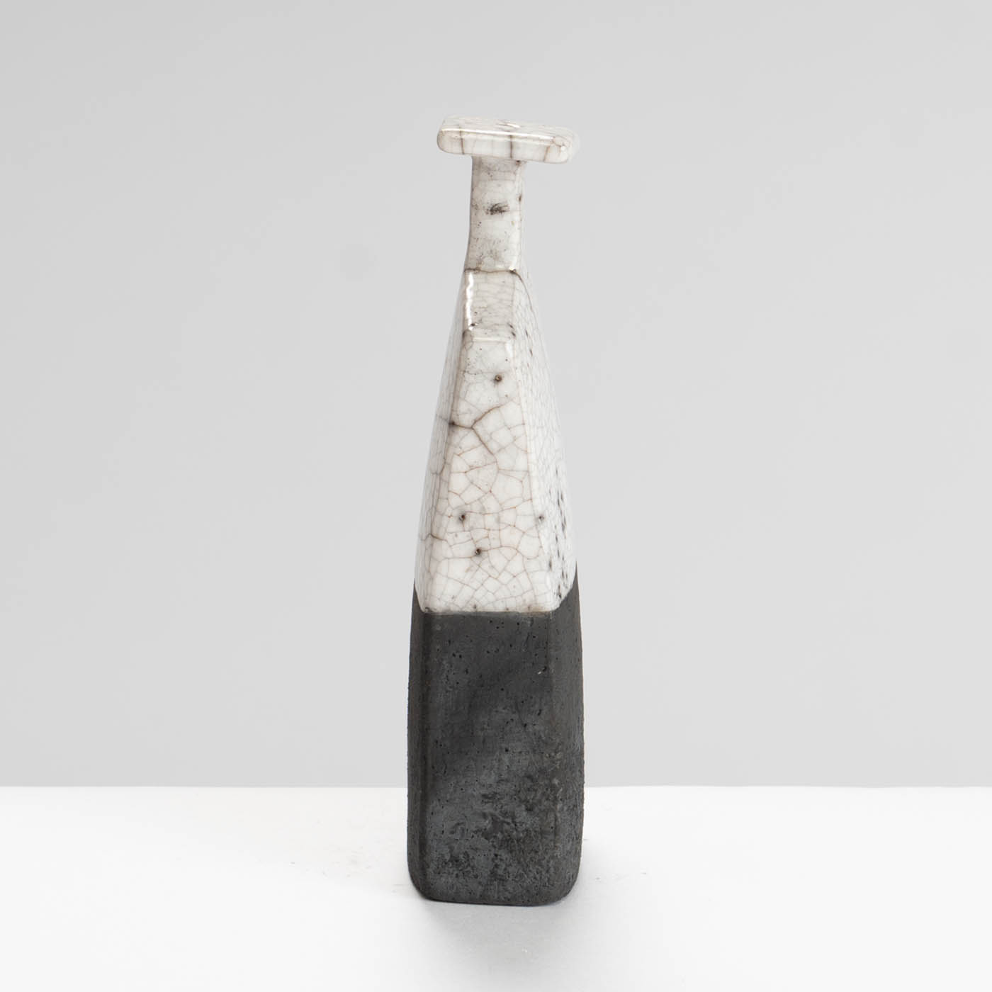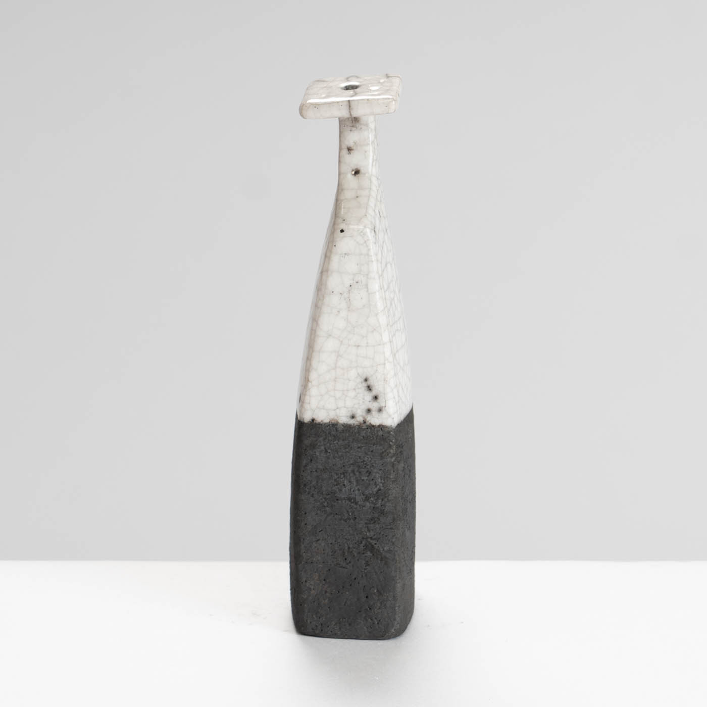 Despite specialising in making one-off slab-built pots during her college years, Ulla established herself as a ceramic jewellery maker for many years. She has however, returned to making individual sculptural pieces. The pots that she now makes are a playful take on classic container forms, particularly the bottle. The shapes have an animated, even anthropomorphic air about them and work well in pairs or in groups.