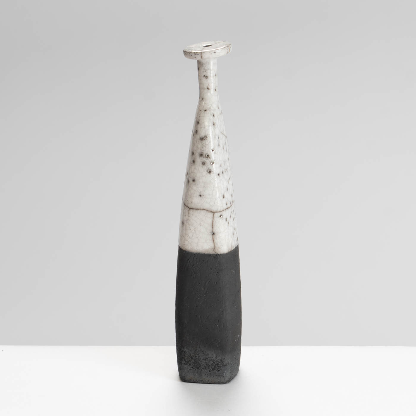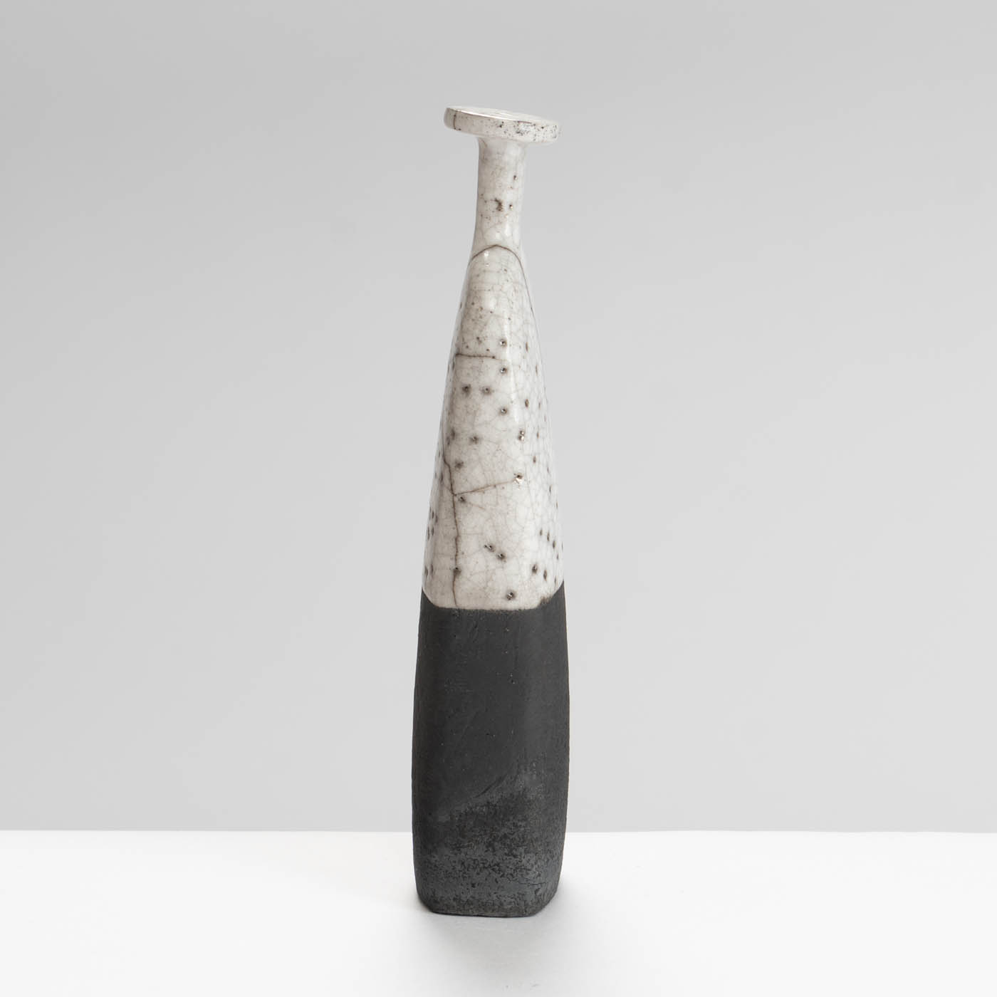 Despite specialising in making one-off slab-built pots during her college years, Ulla established herself as a ceramic jewellery maker for many years. She has however, returned to making individual sculptural pieces. The pots that she now makes are a playful take on classic container forms, particularly the bottle. The shapes have an animated, even anthropomorphic air about them and work well in pairs or in groups.