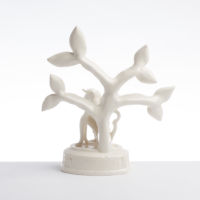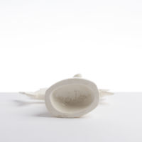 This earthenware sculpture is at once whimsical and narrative with its recognisable moulded parts taken from discarded everyday objects. The glossy clear glaze enhances the purity and sweetness of this vignette. This piece ‘Up’ has a partner called ‘Down’ which is available separately.